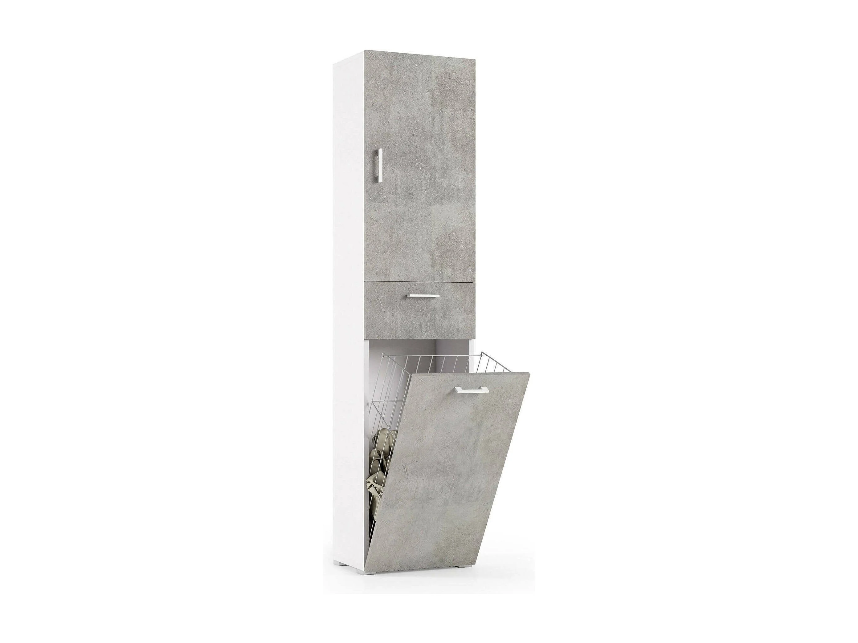 Armoire polyvalente Dcosim, Armoire à linge linéaire avec 2 portes, Colonne de salle de bain avec panier à linge, 100% Made in Italy, 45x32h195 cm, Ciment et Blanc