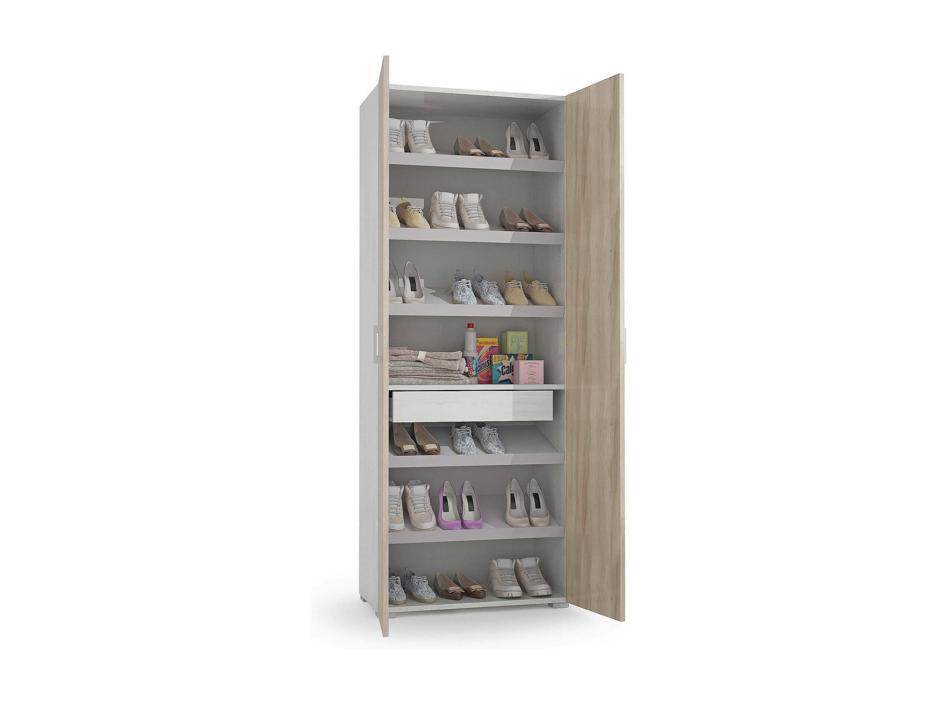 Mehrzweckschrank Ddrega, Linearschrank mit 2 Flügeltüren, Kleiderschrank mit 6 Regalen, Modernes Schuhregal, 100% Made in Italy, 72x37h195 cm, Ulme und Weiß