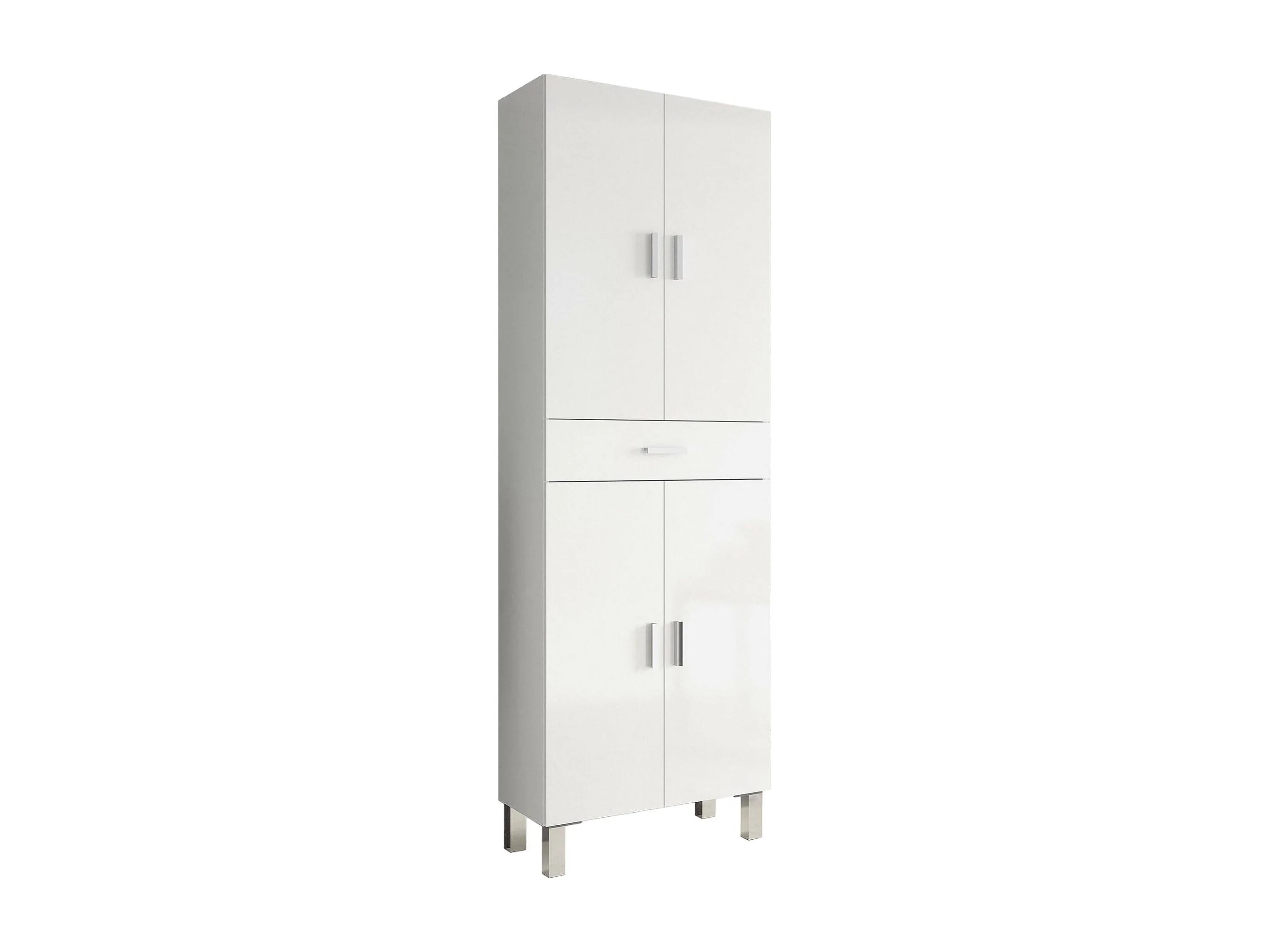 Armoire polyvalente Delobo, Meuble de salle de bain ou buanderie avec 4 portes et 1 tiroir, Armoire à chaussures polyvalente, 60x29h182 cm, Blanc brillant