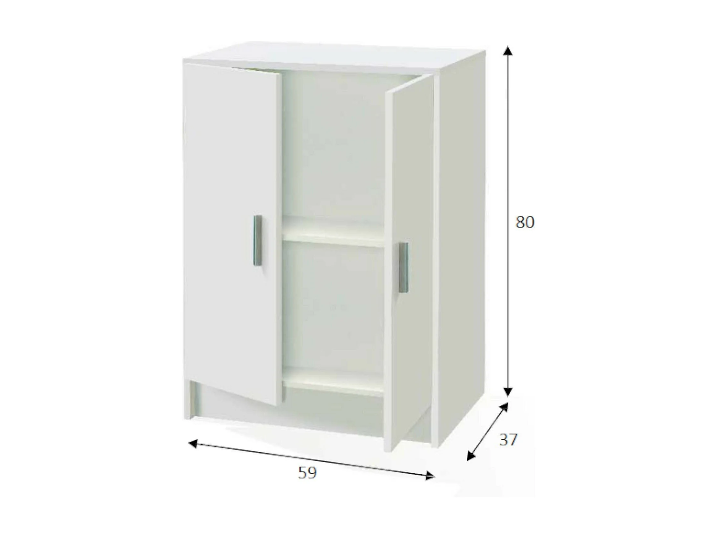 Armoire polyvalente Dhot, Armoire auxiliaire basse avec 2 portes, Étagère à chaussures avec 1 étagère, Armoire multifonctionnelle, 59x37h80 cm, Blanc