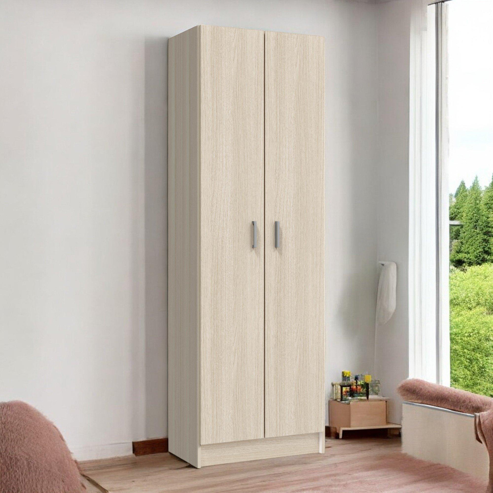 ARMOIRE POLYVALENTE - Armoire auxiliaire à 2 portes, Étagère à chaussures avec 3 étagères, Meuble à chaussures haut moderne, cm 59x37h180, Chêne.