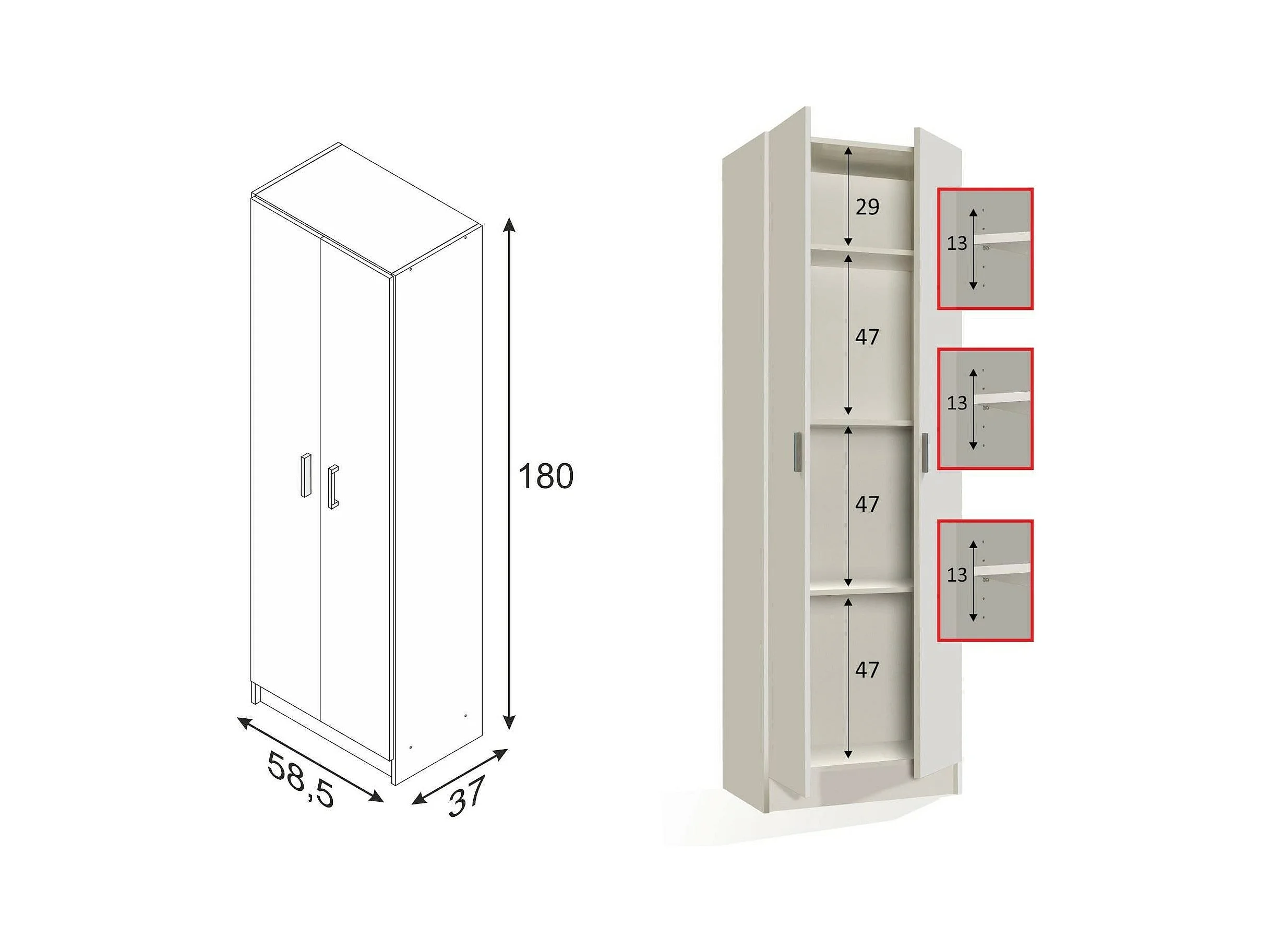 Armoire polyvalente Dmarra, Armoire auxiliaire avec 2 portes, Étagère à chaussures avec 3 étagères, Étagère à chaussures haute moderne, 59x37h180 cm, Chêne