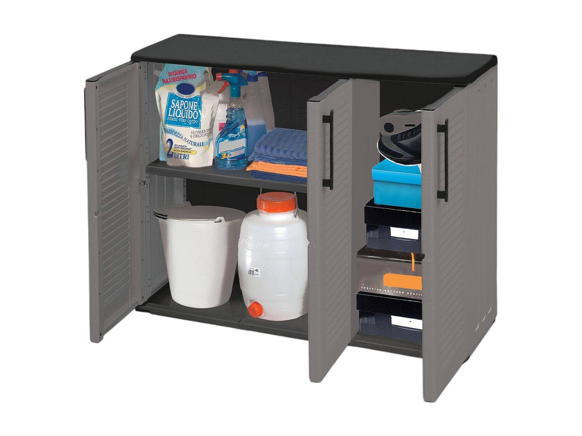 Armoire polyvalente extérieure ou intérieure, plateau mobile 3 portes et 1 étagère de polypropylène, 100% Made in Italy, 102x37h84 cm, couleur grise