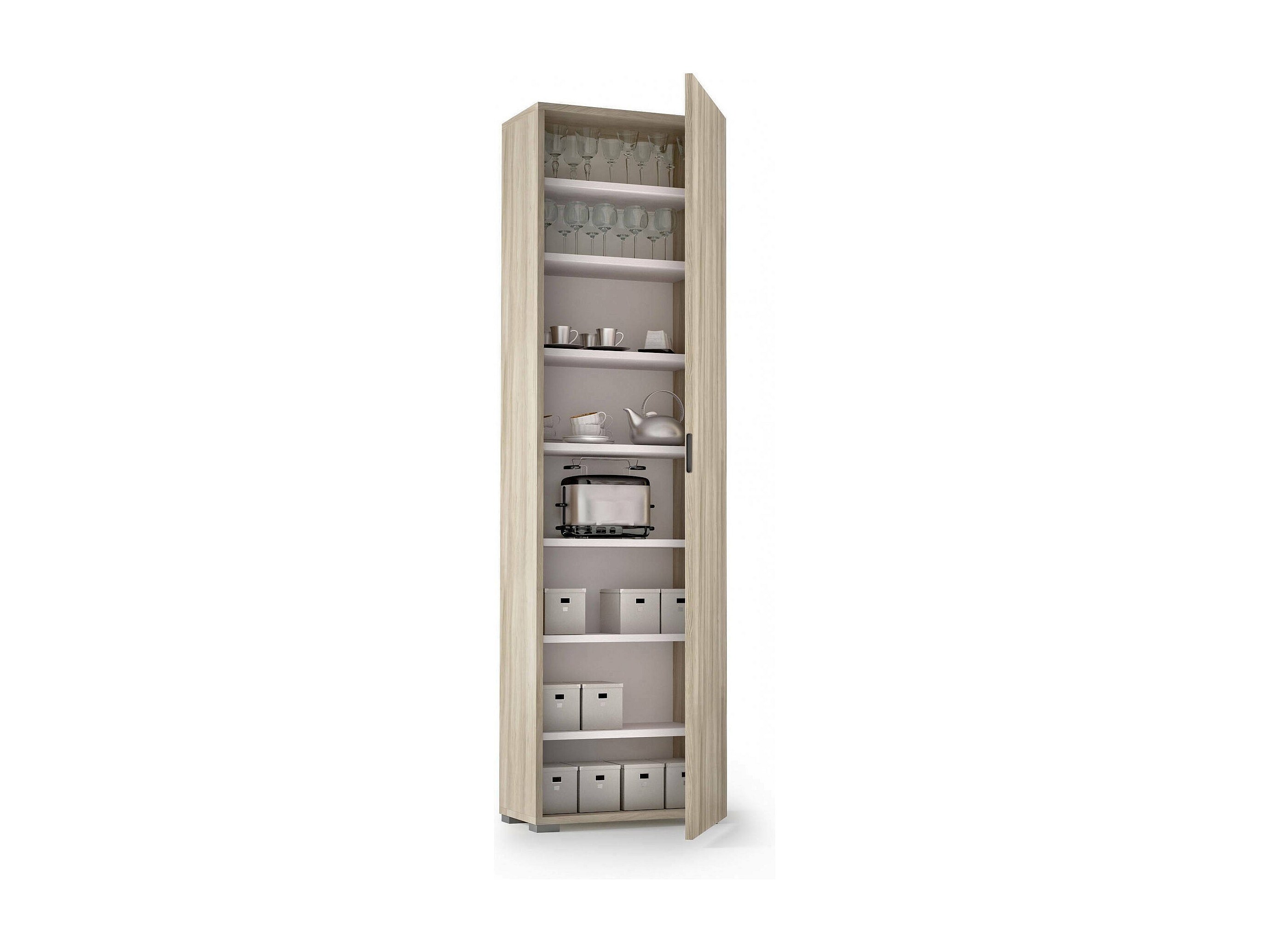 Armadio multiuso Aquilegia, Mobile lineare a 1 Anta battenti e 4 ripiani regolabili, Mobile a colonna per bagno, 100% Made in Italy, 45x45h195 cm, Rovere e Bianco