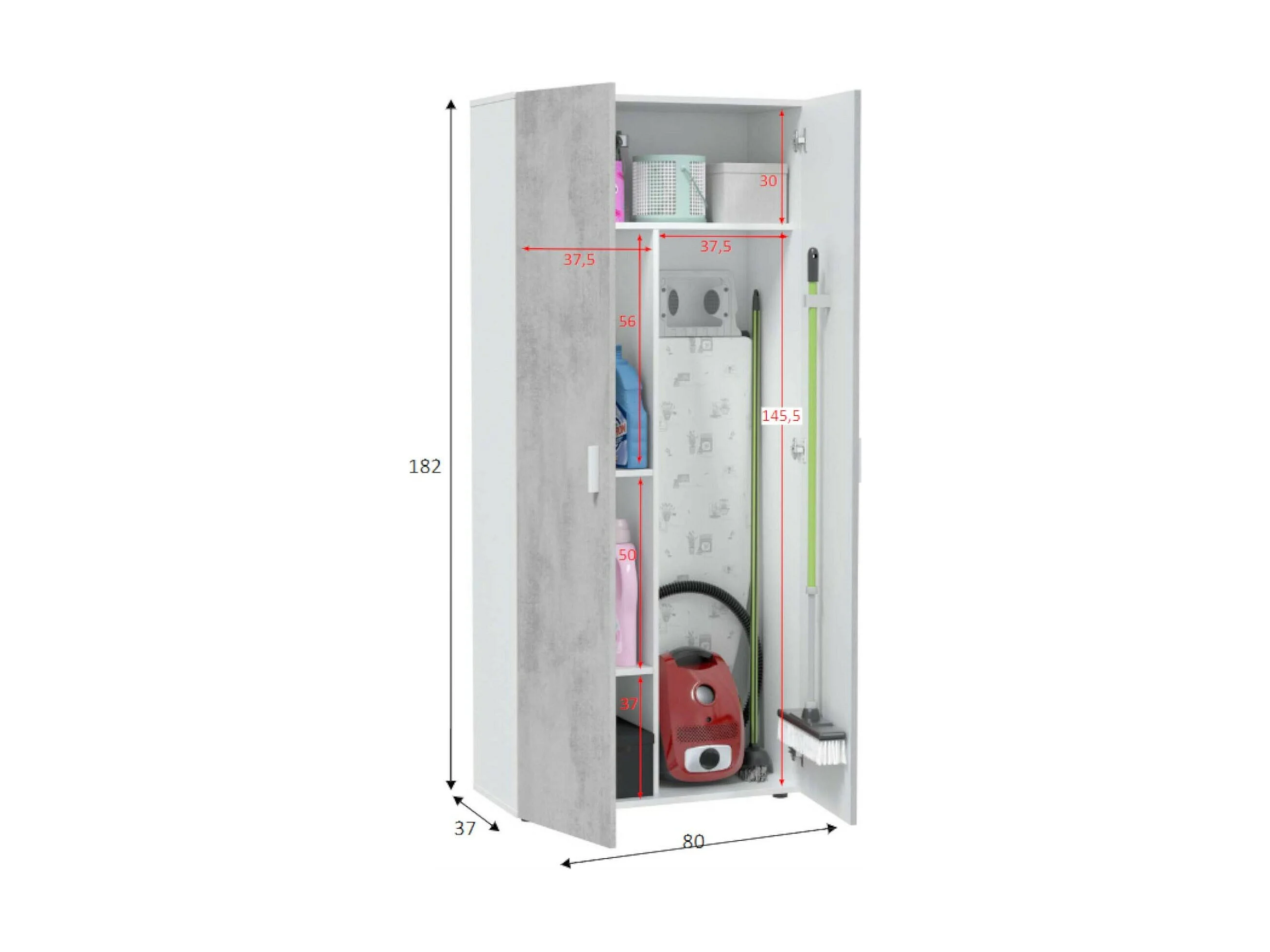 Armoire polyvalente Irvine, Armoire auxiliaire avec 2 portes et 3 étagères, Armoire à balais, 80x37h182 cm, Ciment et Blanc