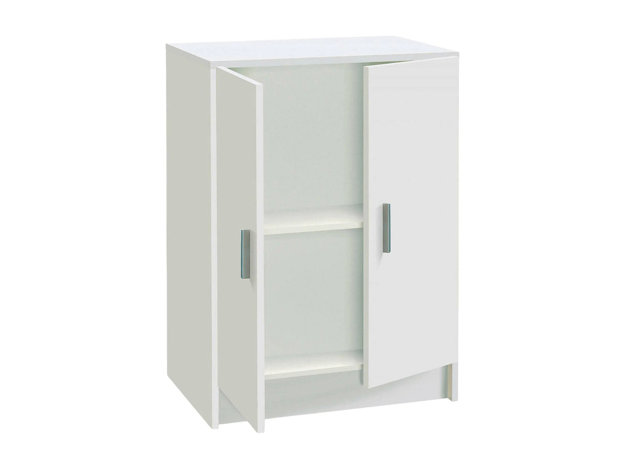 Armoire polyvalente Memphis, Armoire auxiliaire basse avec 2 portes, Étagère à chaussures avec 1 étagère, Armoire multifonctionnelle, 59x37h80 cm, Blanc