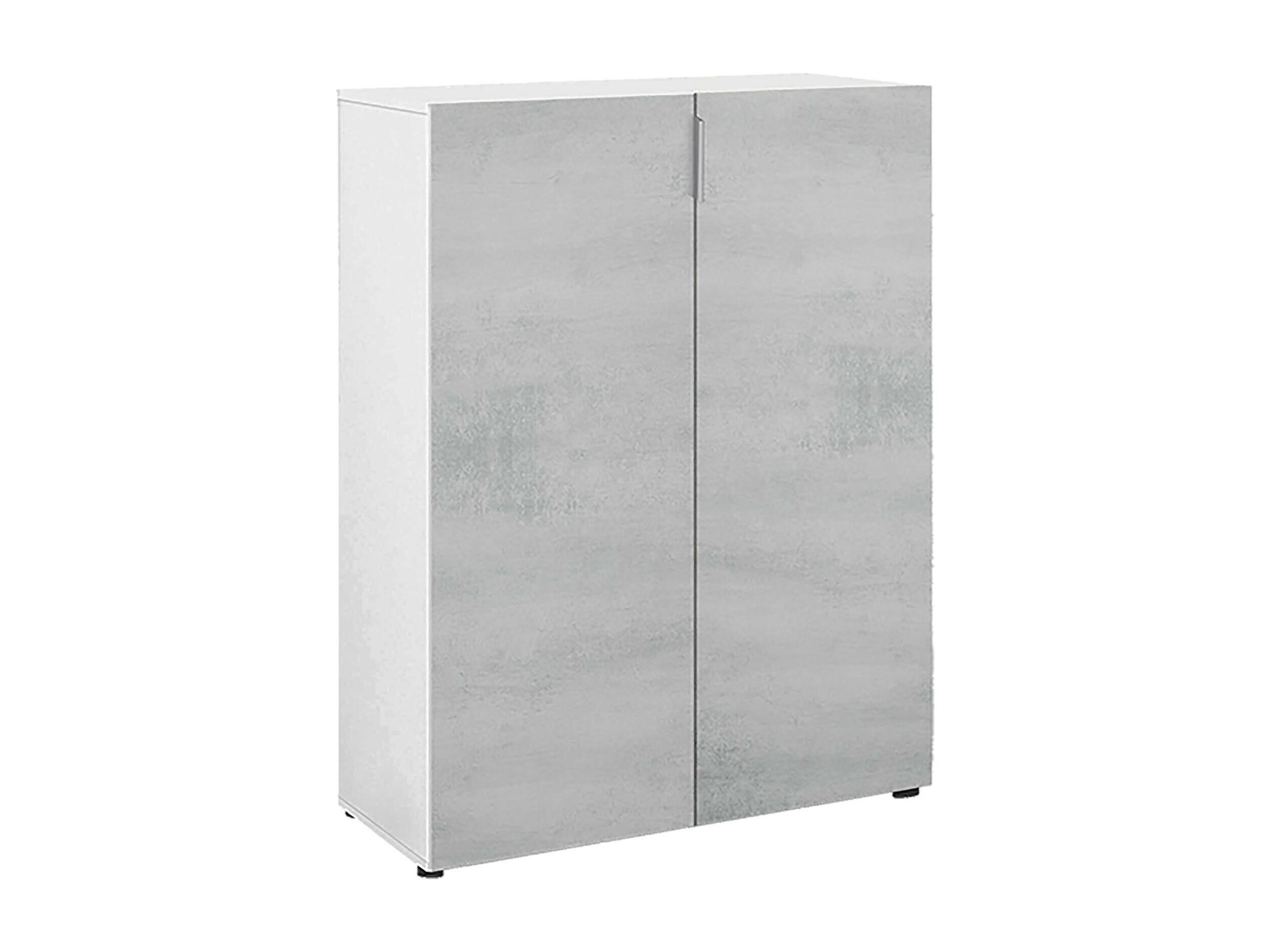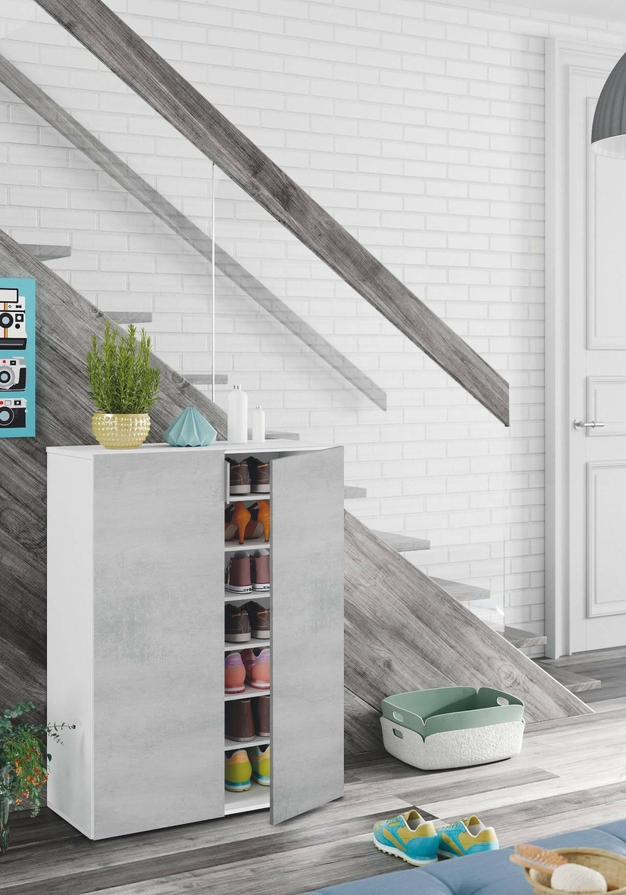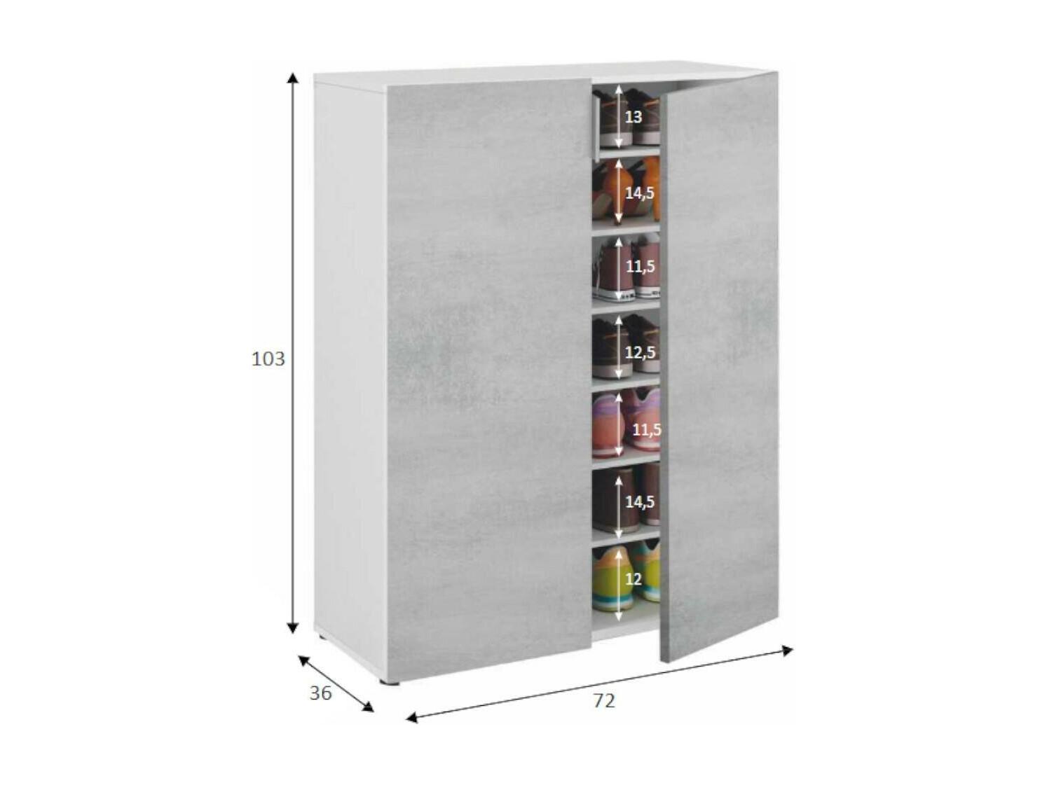 Armoire polyvalente Olathe, Armoire auxiliaire avec 2 portes, Armoire à chaussures basse avec 6 étagères, Étagère à chaussures basse, 70x36h103 cm, Ciment et Blanc