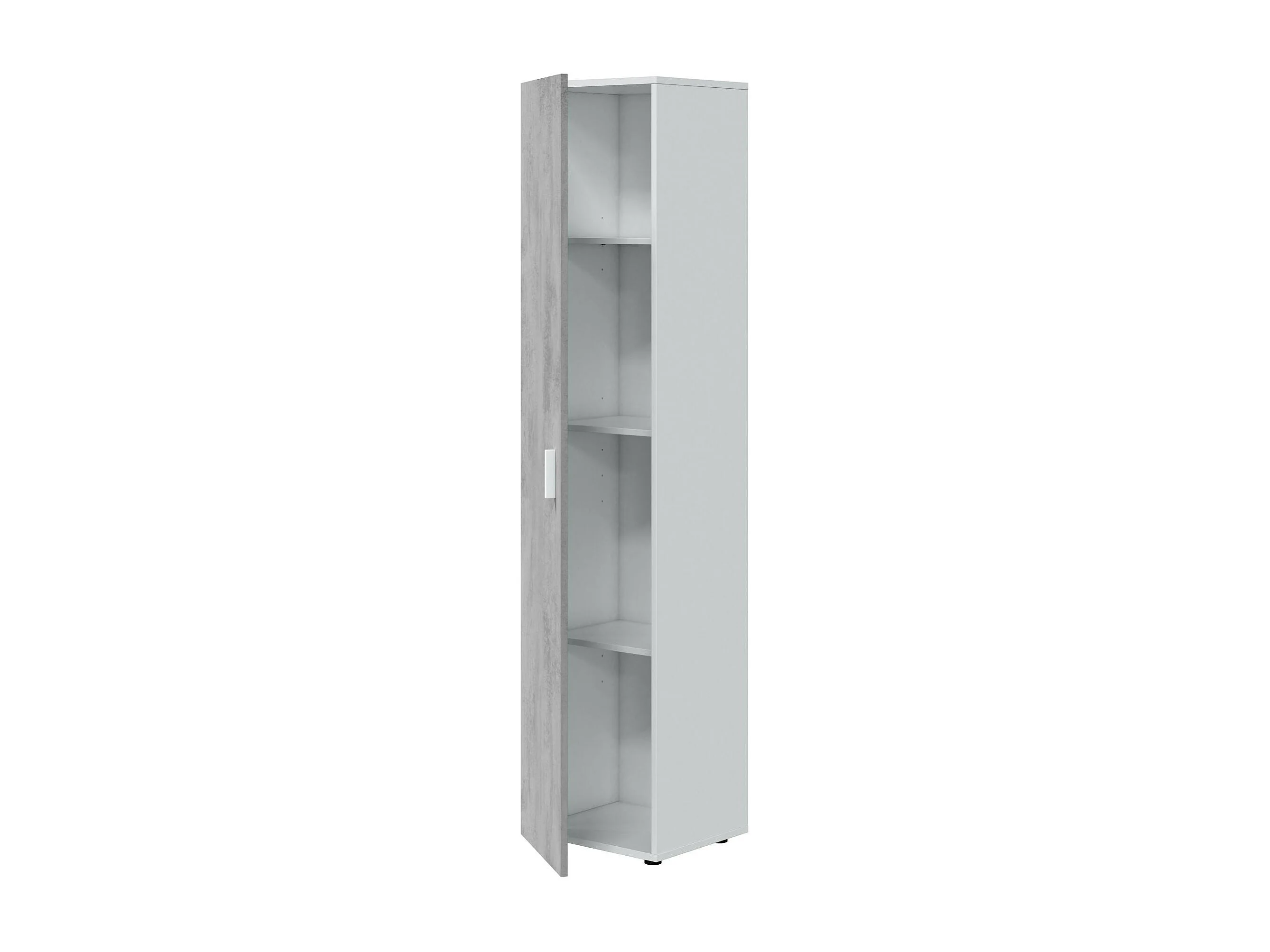 Armoire polyvalente Reno, Armoire auxiliaire avec 1 porte et 3 étagères, Armoire moderne, Armoire colonne haute, 41x37h182 cm, Ciment et Blanc