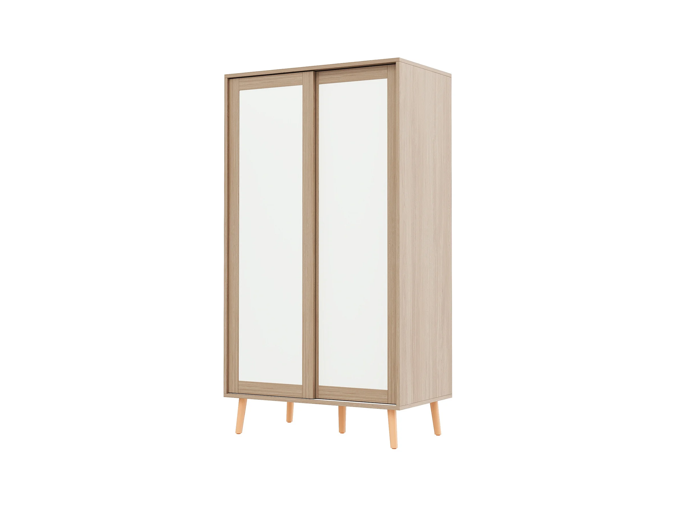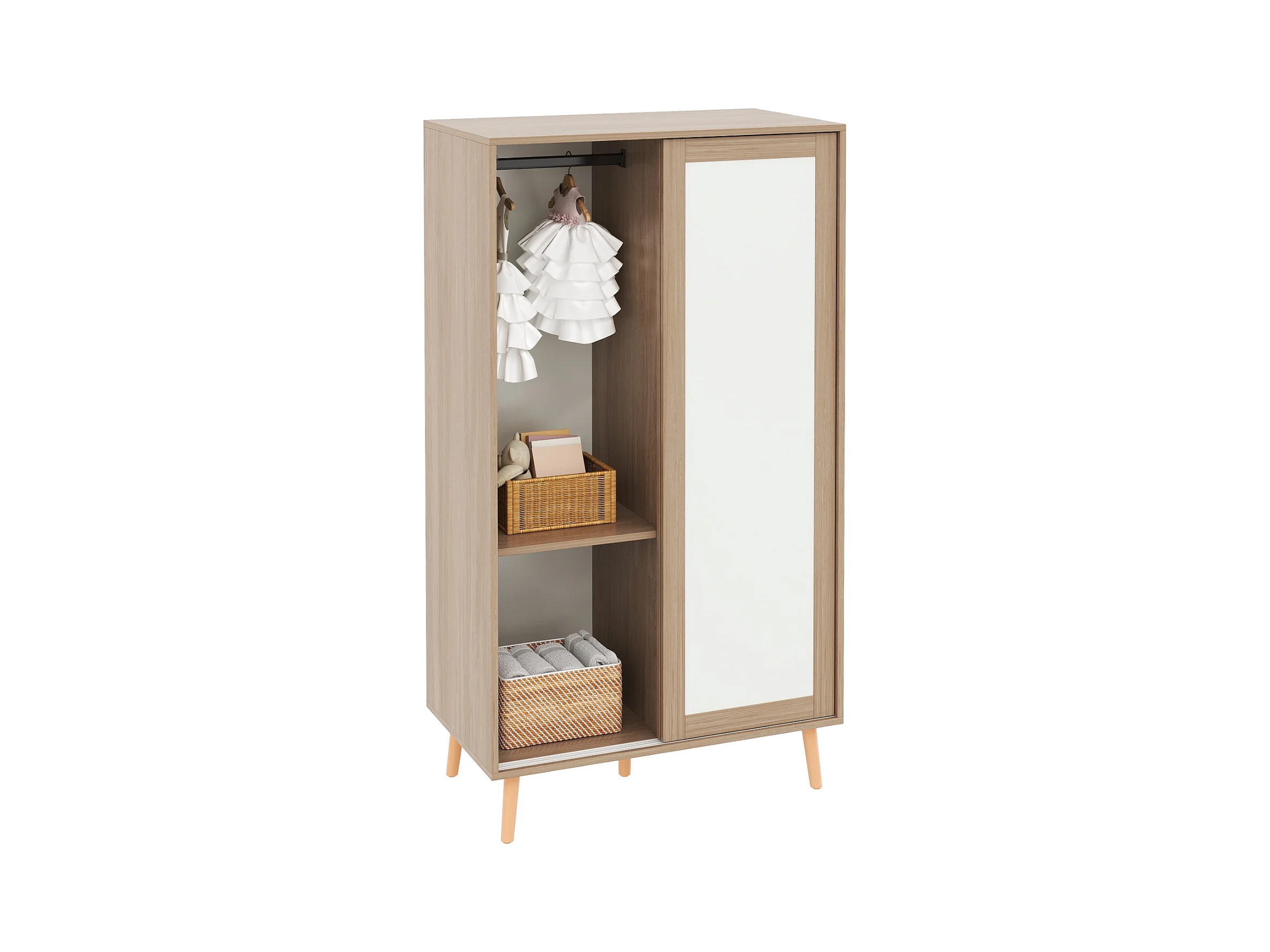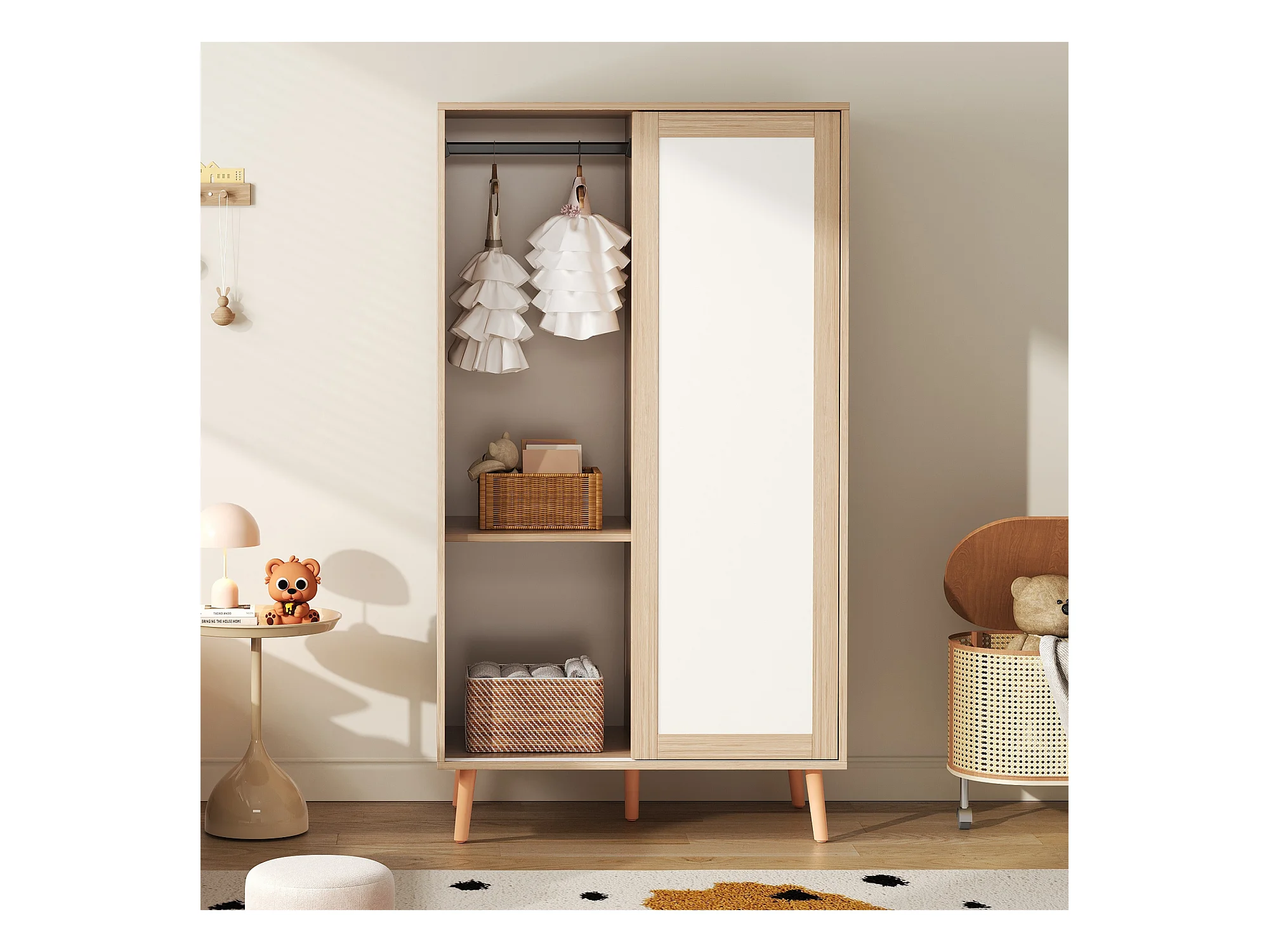 Ensemble armoire enfant - armoire à portes coulissantes + armoire ouverte - pieds en bois massif - blanc + naturel