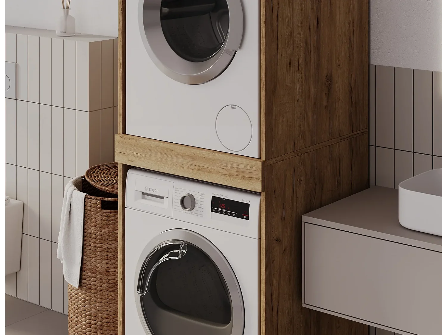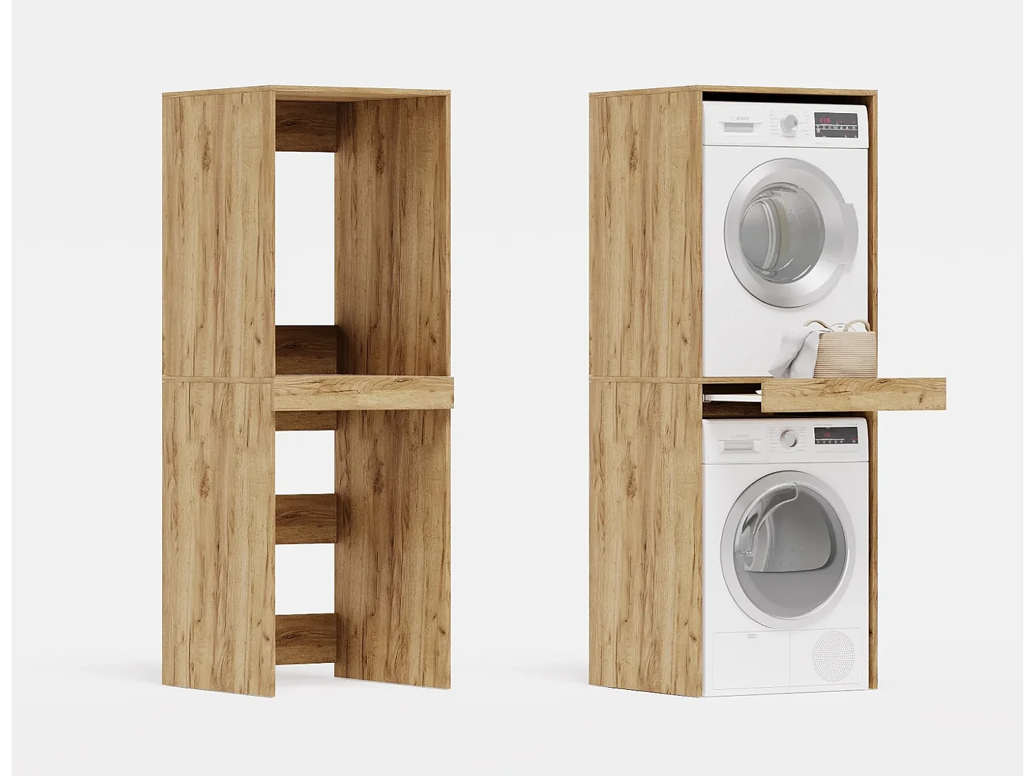 Armoire pour machine à laver et sèche-linge avec tablette coulissante • Meuble de rangement pour lave-linge et sèche-linge • Armoire de surplomb 187 x 65 x 66 cm
