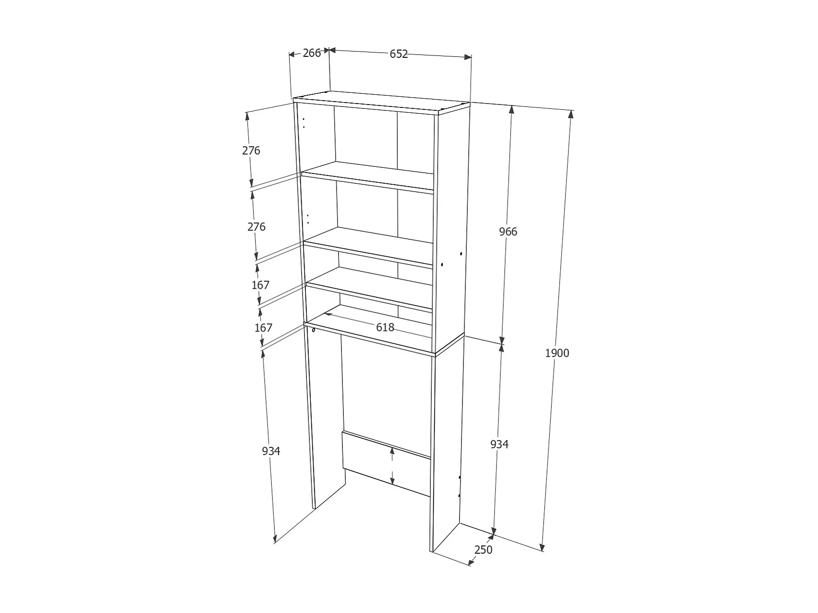 Armoire pour machine à laver haaus Fyn, Béton/Blanc, 65 x 27 x 190 cm