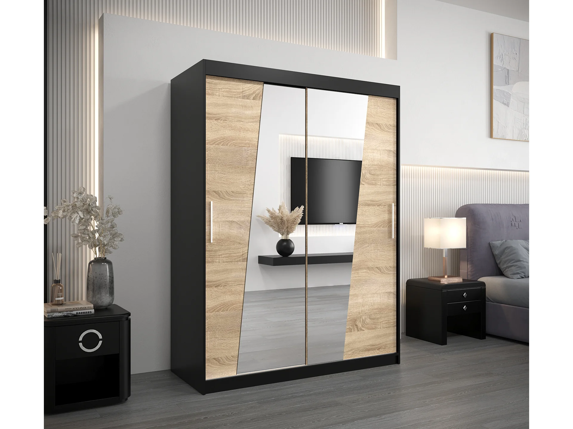 Armoire Rhomb À Portes Coulissantes 200/150/62 2 portes (Noir/Sonoma)