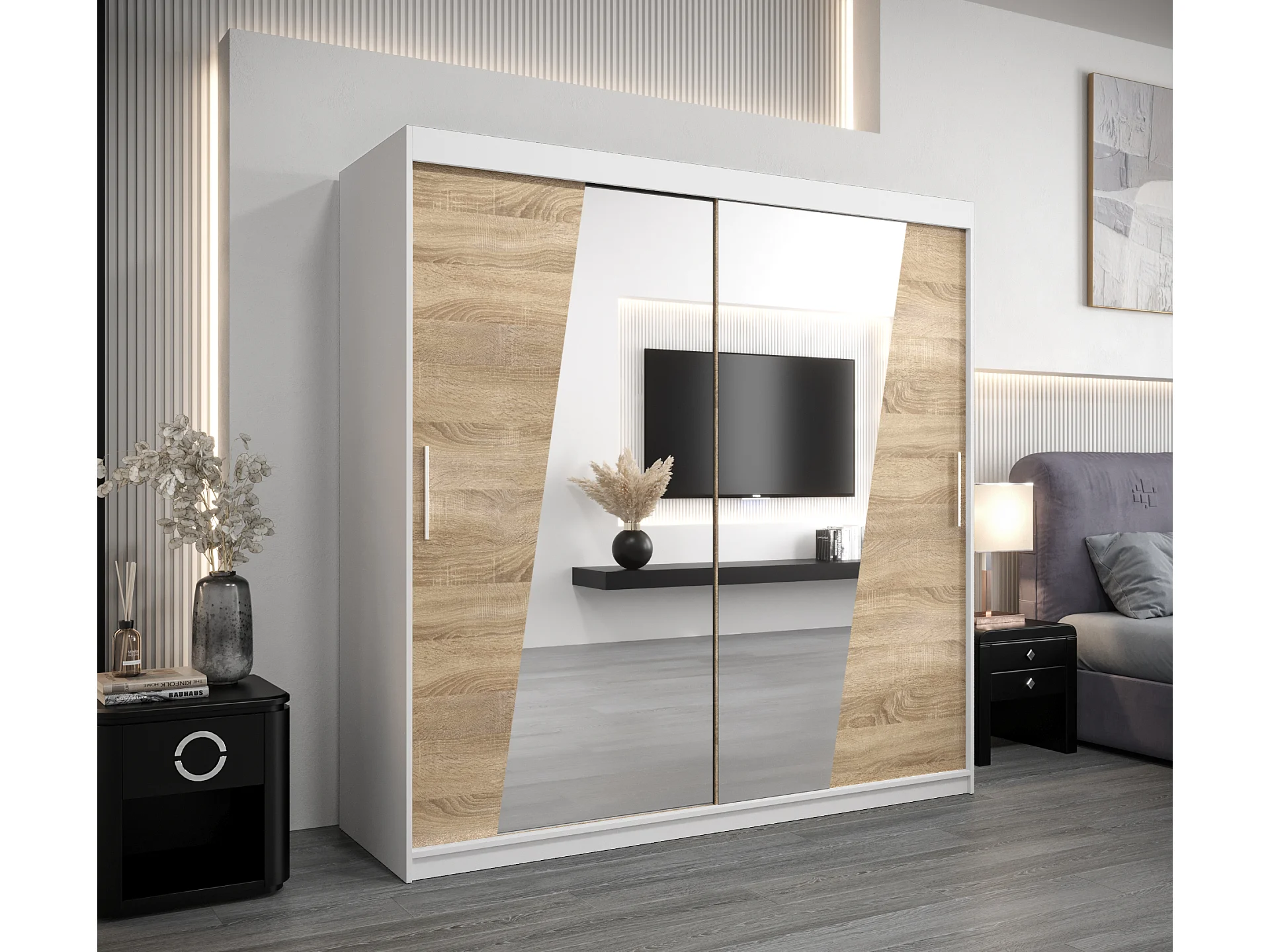 Armoire Rhomb À Portes Coulissantes 200/200/62 2 portes (Blanc/Sonoma)