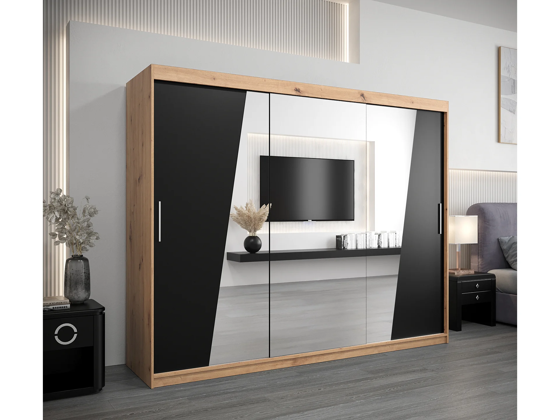 Armoire Rhomb À Portes Coulissantes 200/250/62 3 Portes (Artisan/Noir)