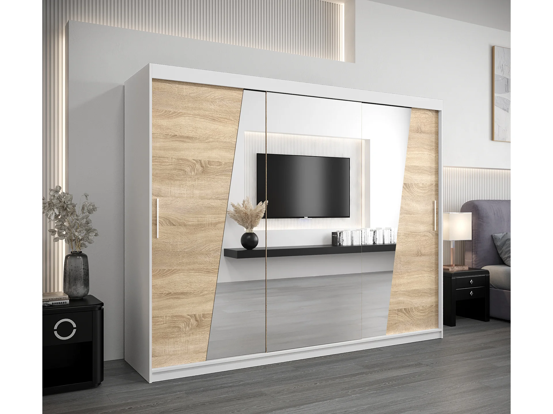 Armoire Rhomb À Portes Coulissantes 200/250/62 3 Portes (Blanc/Sonoma)