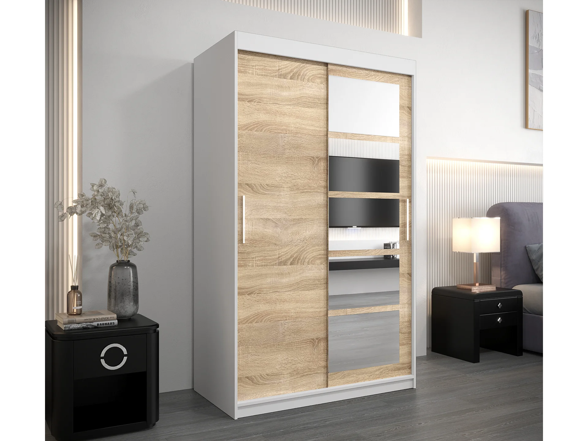 Armoire Roma 1 À Portes Coulissantes 200/120/62 2 portes (Blanc/Sonoma)
