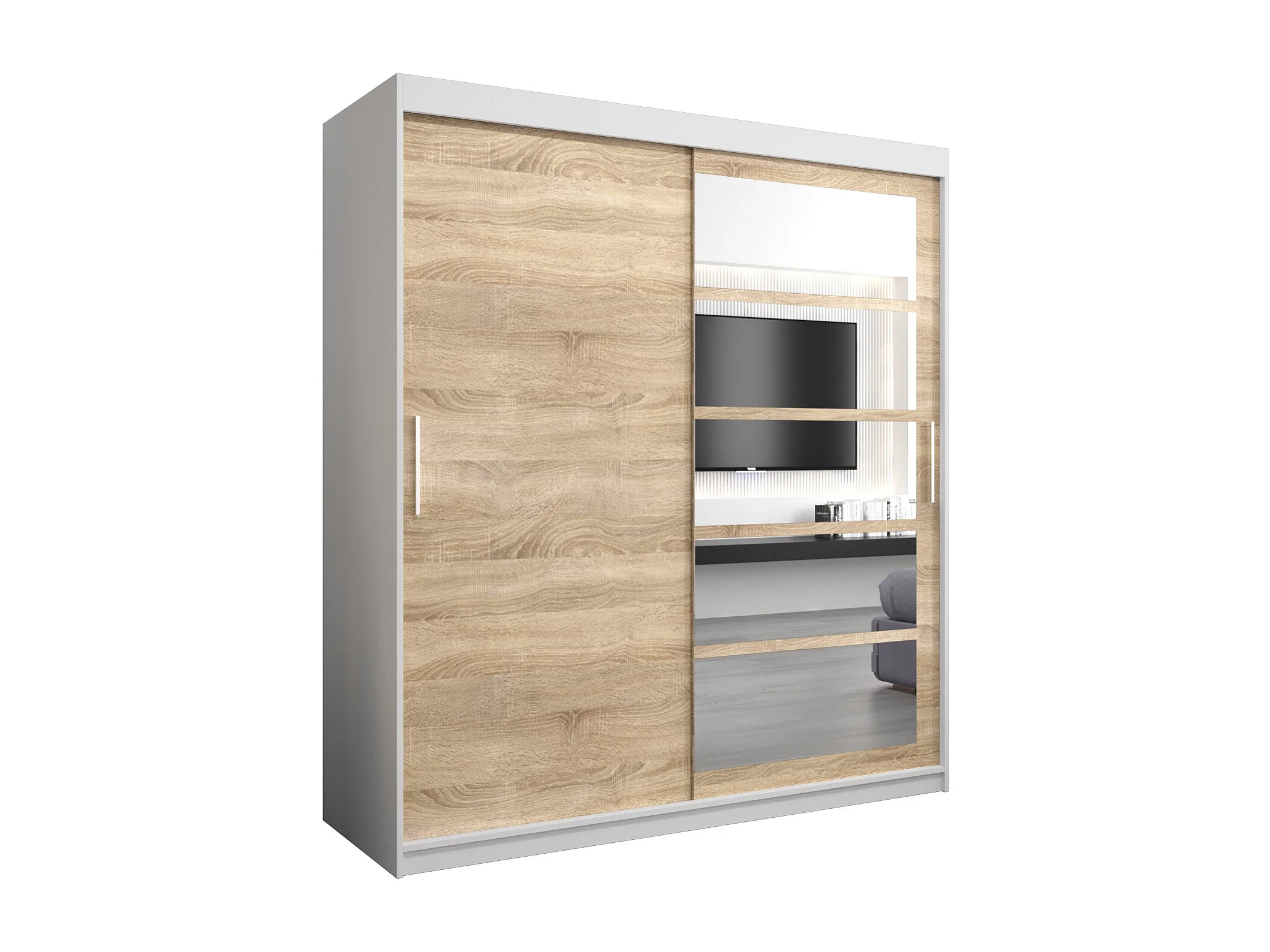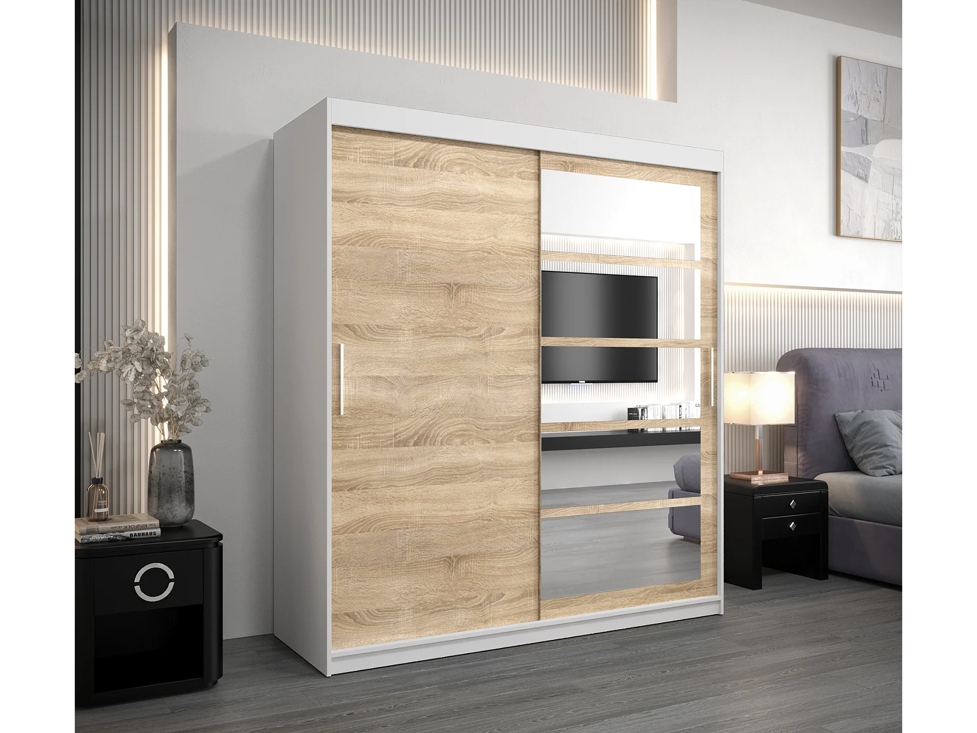 Armoire Roma 1 À Portes Coulissantes 200/180/62 2 portes (Blanc/Sonoma)