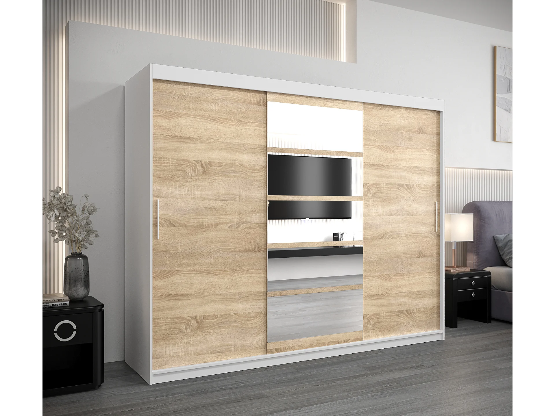 Armoire Rhomb À Portes Coulissantes 200/250/62 3 Portes (Blanc/Sonoma)