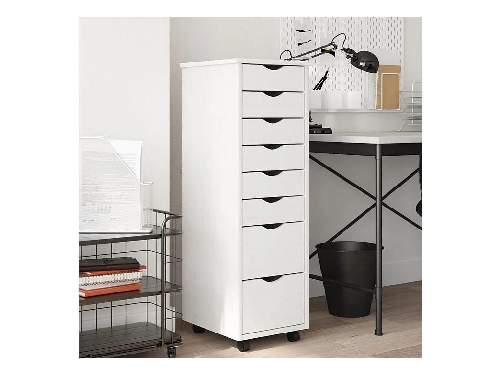 Armoire roulante avec tiroirs MOSS blanc bois de pin solide FR62594