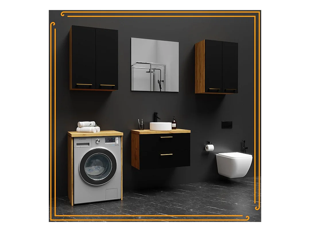 Armoire de salle de bain au-dessus de la machine à laver et du sèche-linge, étagère en chêne Lancelot.