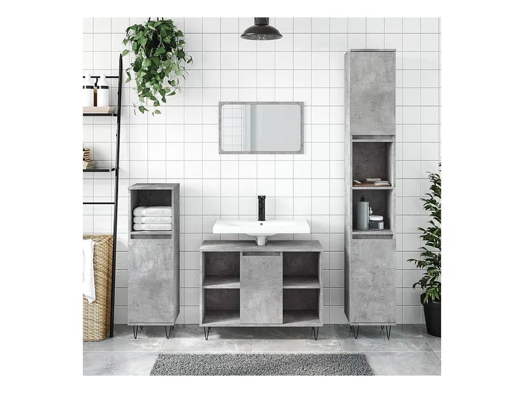 Armoire salle de bain gris béton 80x33x60cm bois d'ingénierie