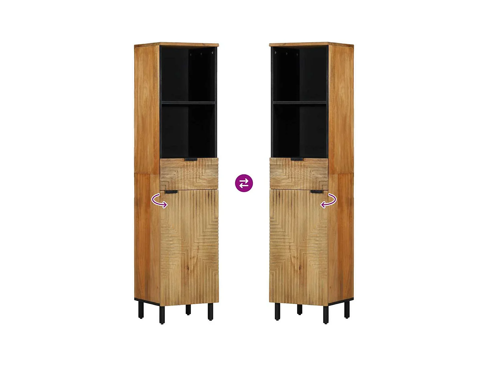 Armoire salle de bain marron 38x33x160 cm bois massif manguier