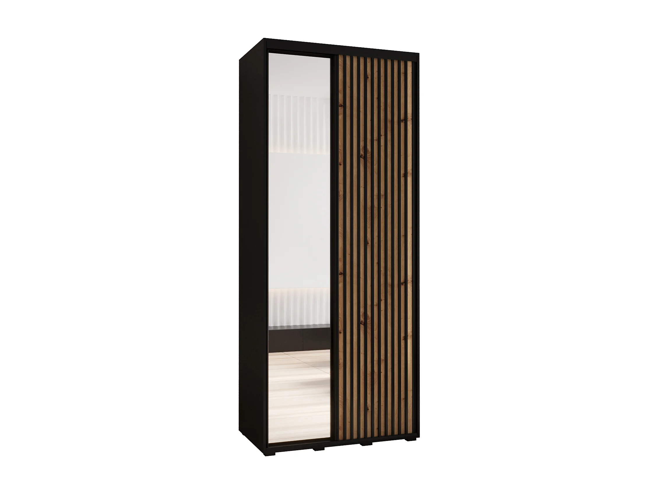 ARMOIRE SAPPORO 2 À PORTES COULISSANTES 205,2/110/60 2 Portes (Noir/Artisan)