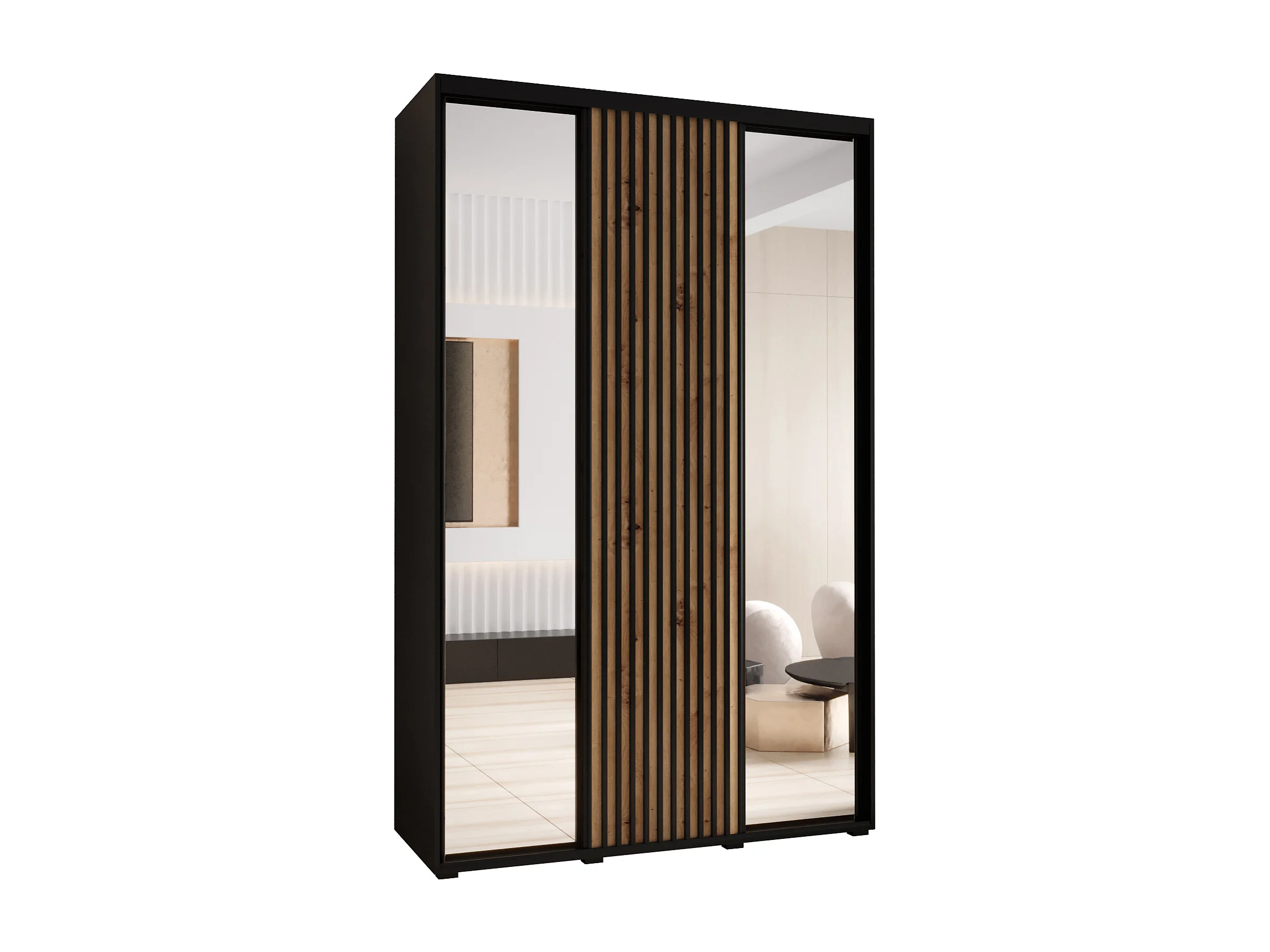 ARMOIRE SAPPORO 2 À PORTES COULISSANTES 205,2/150/60 3 Portes (Noir/Artisan)