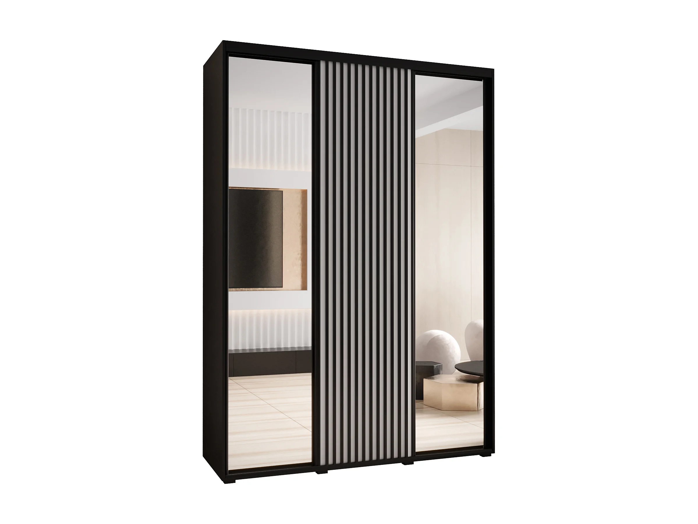 ARMOIRE SAPPORO 2 À PORTES COULISSANTES 205,2/170/60 3 Portes (Noir/Blanc)