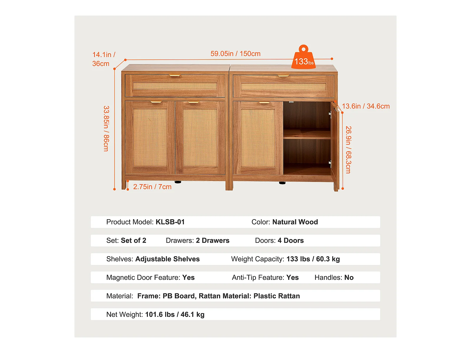 Armoire SucceBuy Ensemble de 2 Armoires en Rotin, Étages Réglables pour un Rangement Spacieux, Idéal pour les Couloirs, les Entrées
