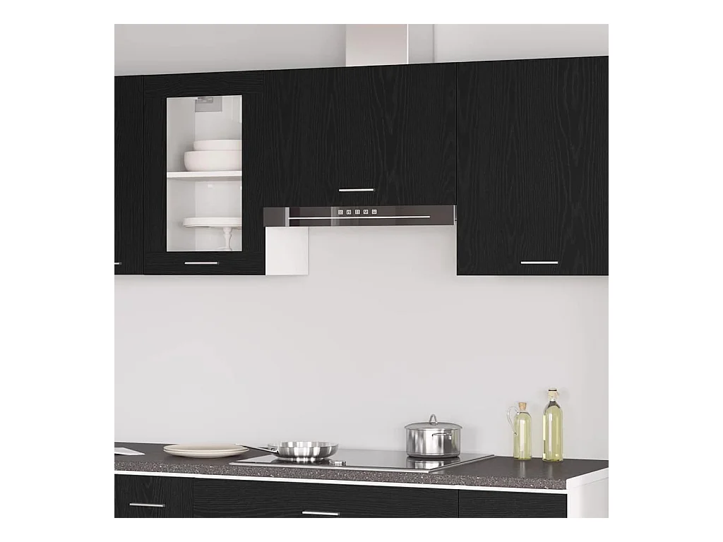 Armoire murale de cuisine Kalmar noir bois d'ingénierie