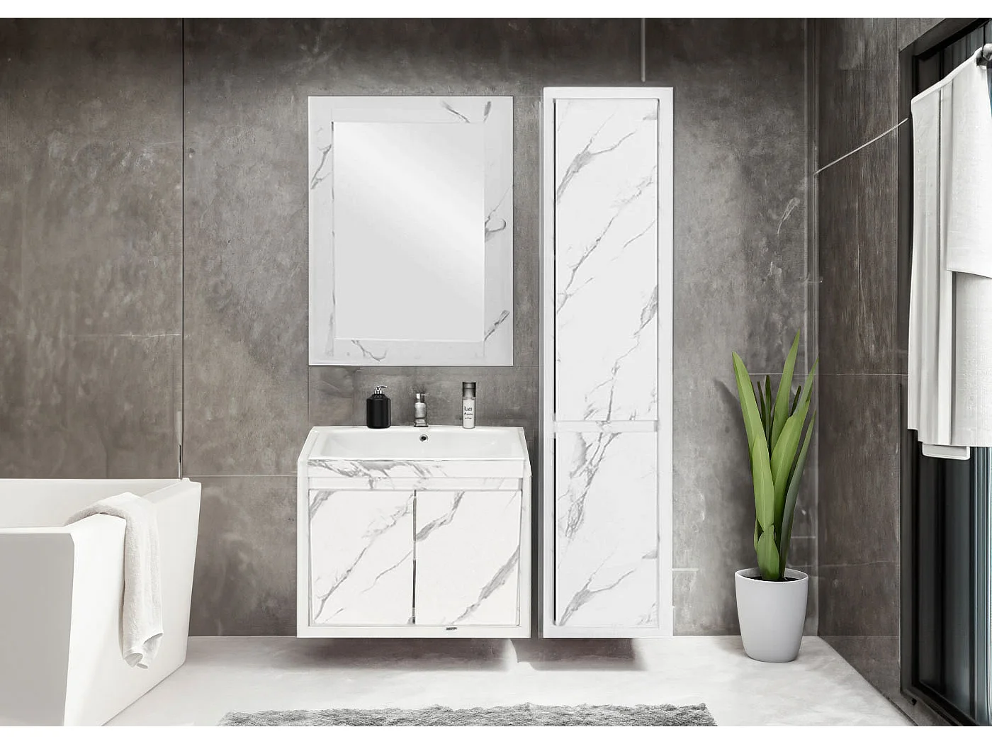 Armoire suspendue MCW-L86, aspect marbre blanc