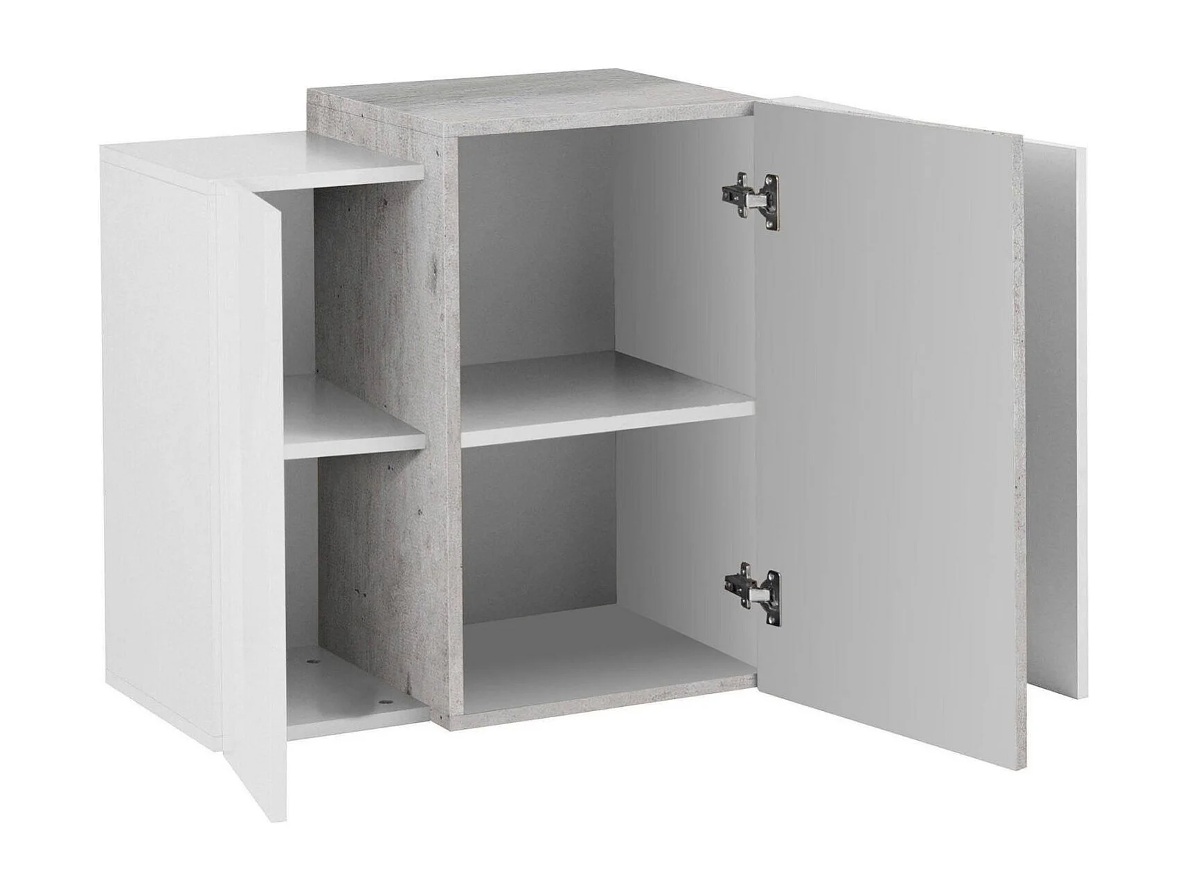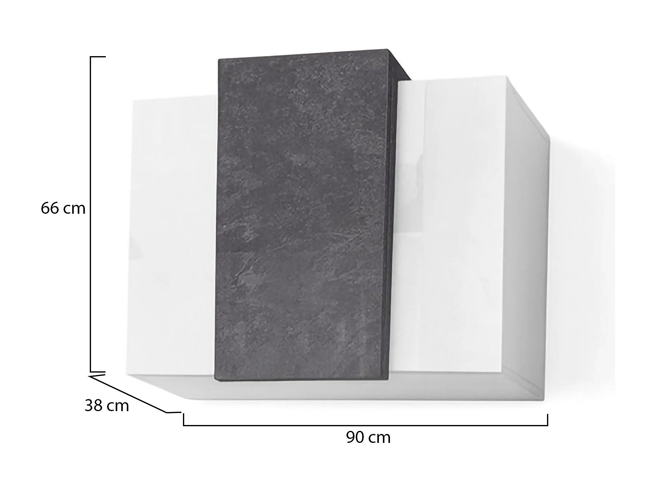 Armoire suspendue Michael, Armoire polyvalente, Armoire murale, 100% Made in Italy, 90x38h66 cm, Blanc brillant et ardoise