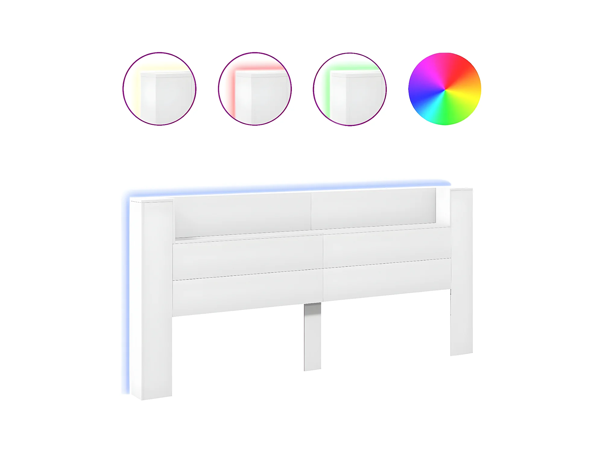 Tête de lit à LED blanc 200x18,5x103,5 cm bois d'ingénierie