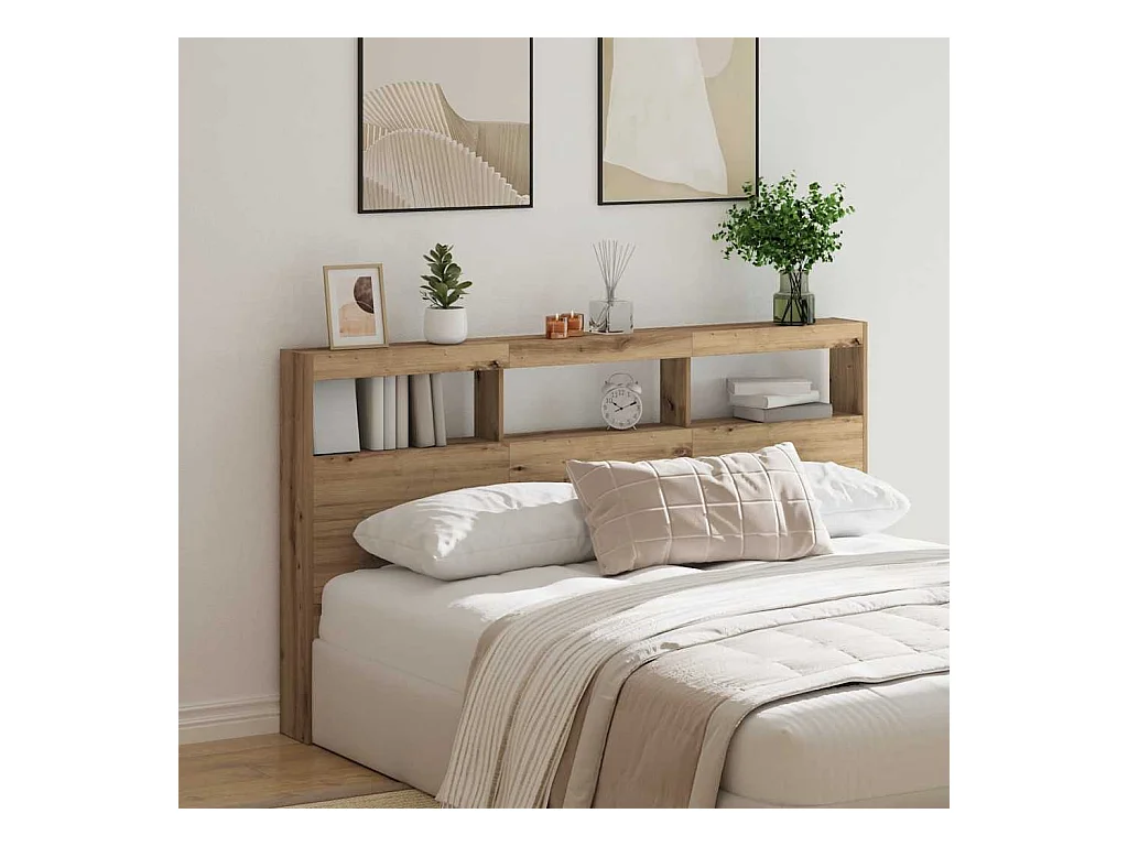 Tête de lit à LED chêne artisanal 180x18,5x103,5 cm