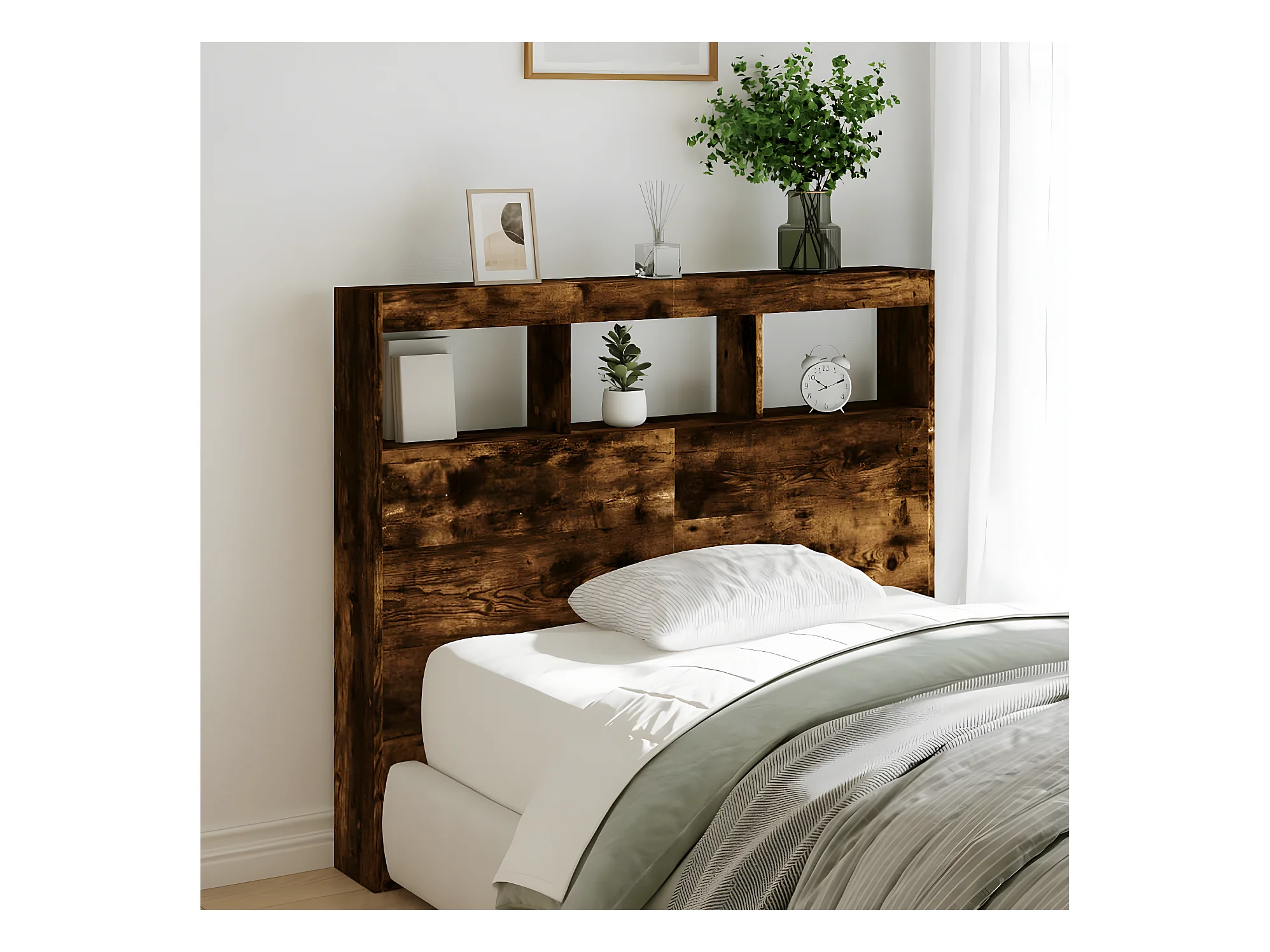 Tête de lit à LED chêne fumé 120x18,5x103,5cm bois d'ingénierie