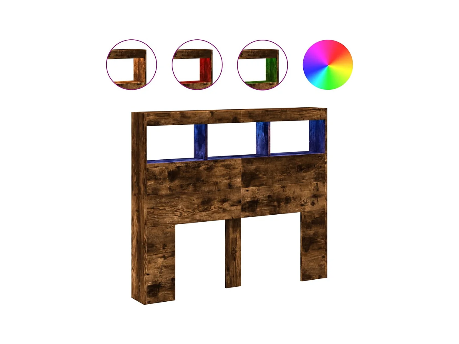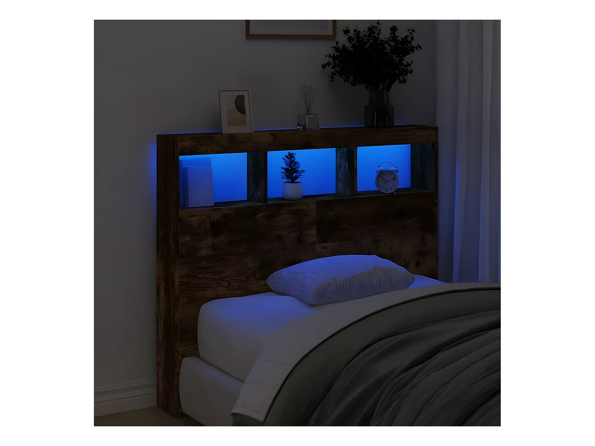 Armoire tête de lit avec LED chêne fumé 120x17x102 cm