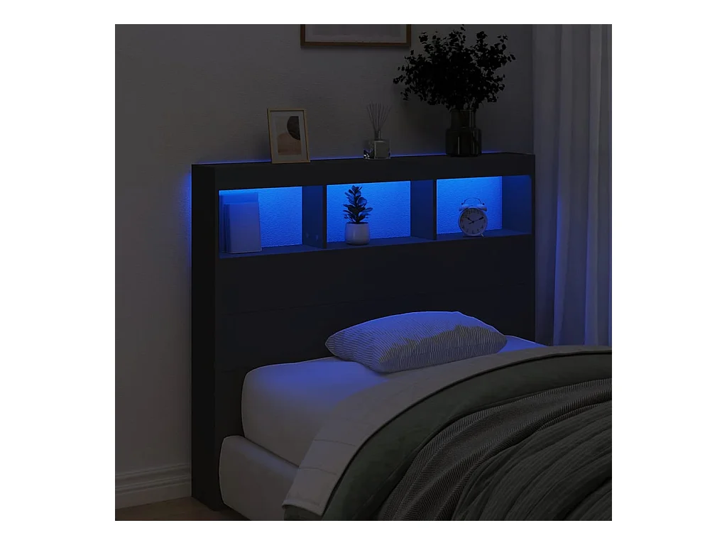 Armoire tête de lit avec LED noir 120x17x102 cm FR52374