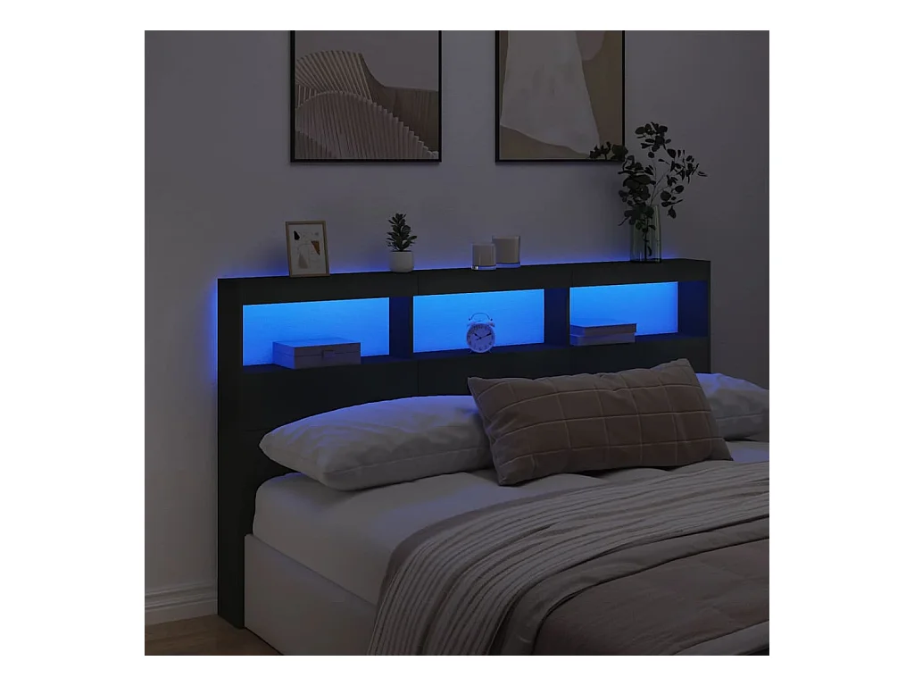 Armoire tête de lit avec LED noir 180x17x102 cm FR38826