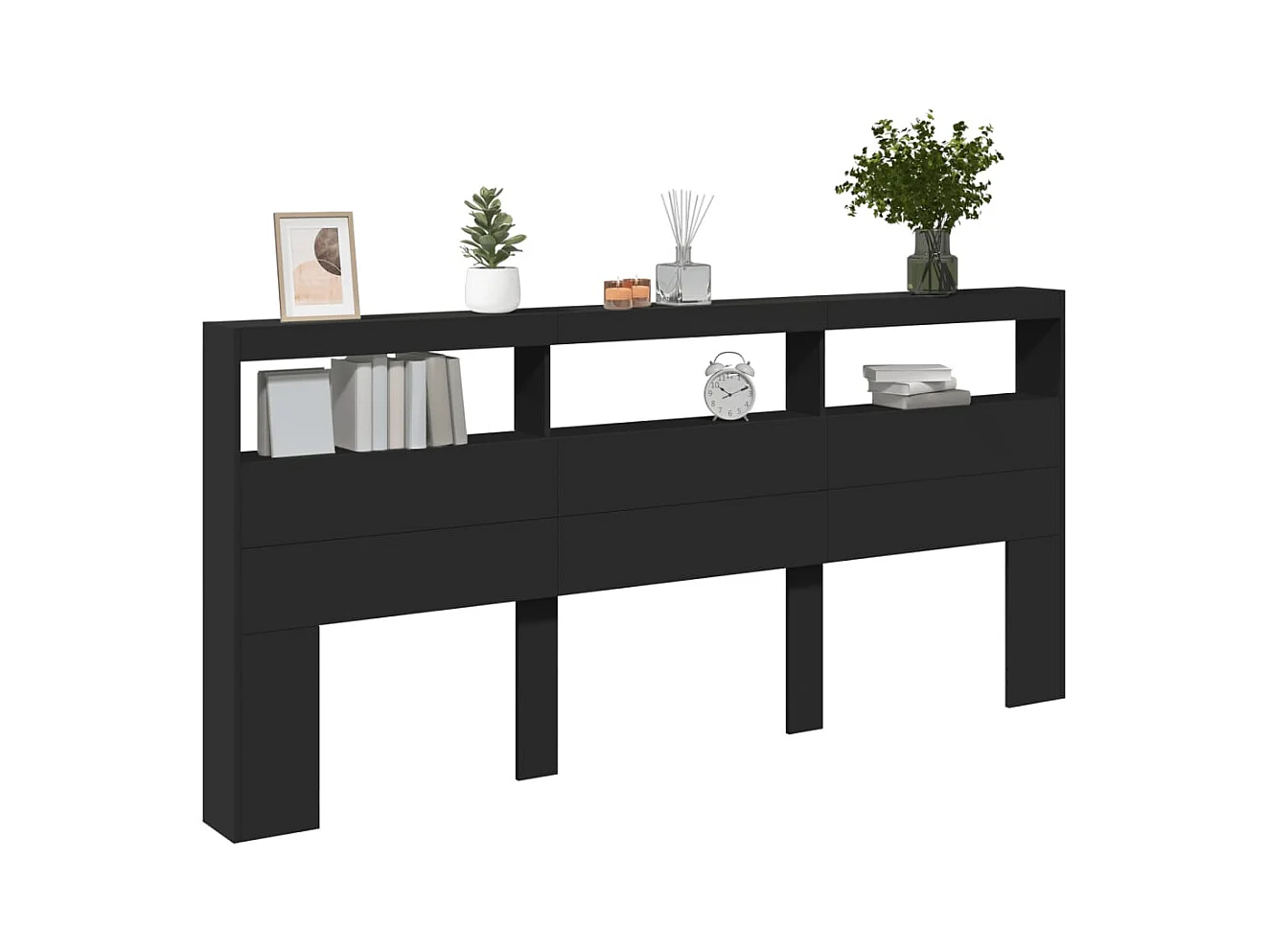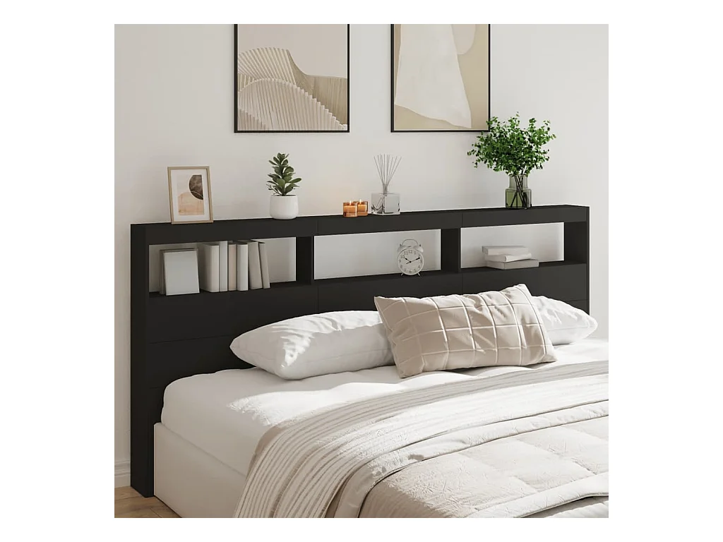 Armoire tête de lit avec LED noir 220x16,5x103,5 cm FR45457