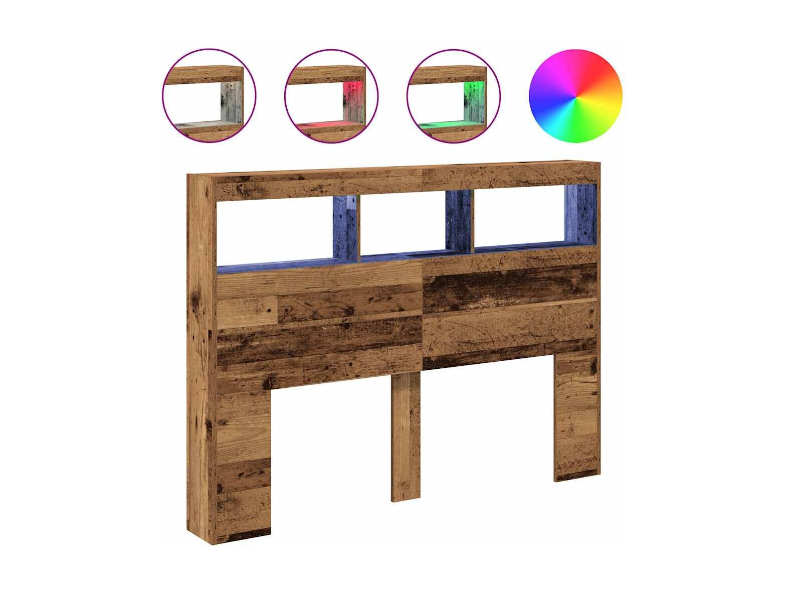 Armoire tête de lit avec LED vieux bois 140x17x102 cm