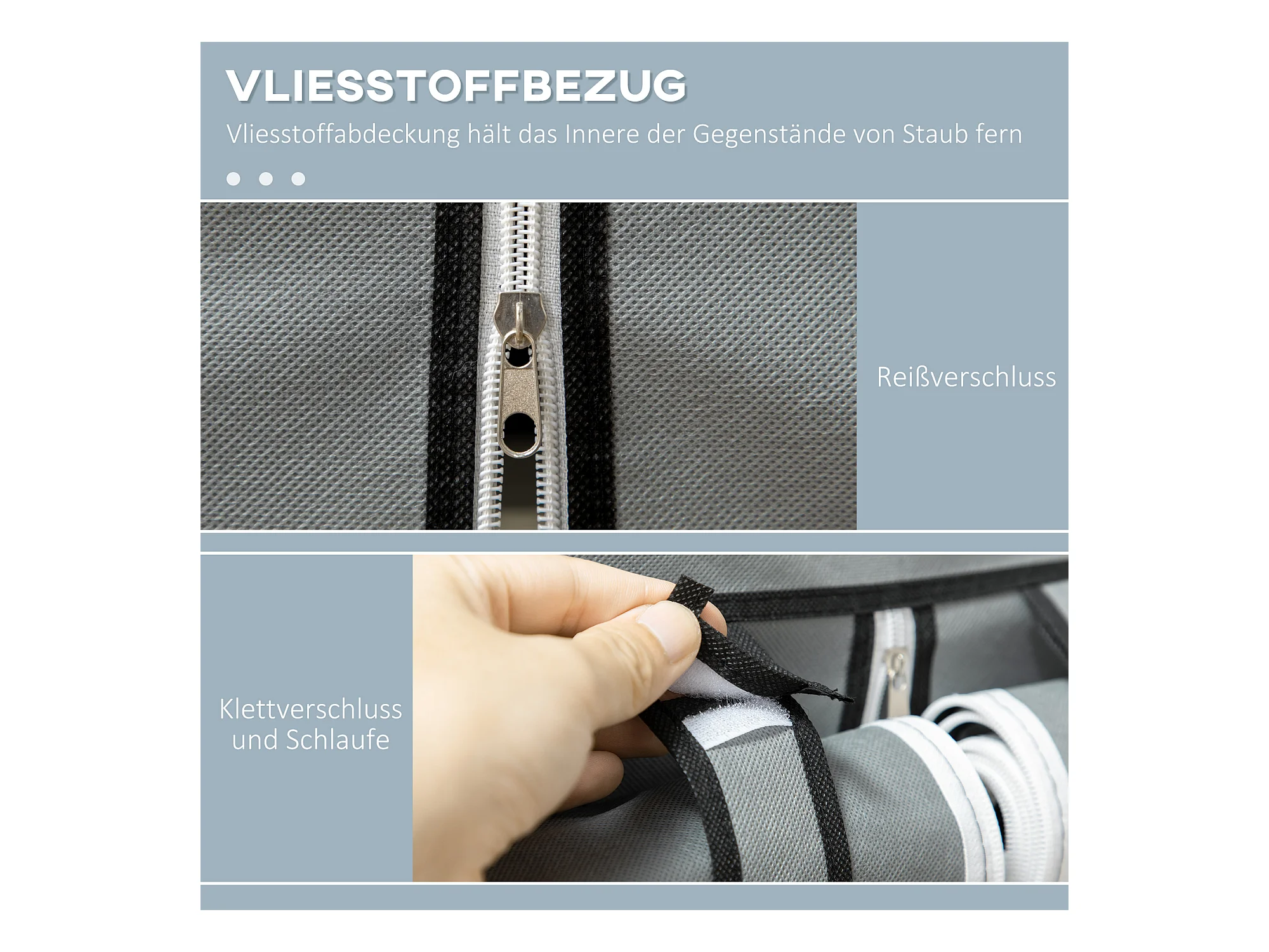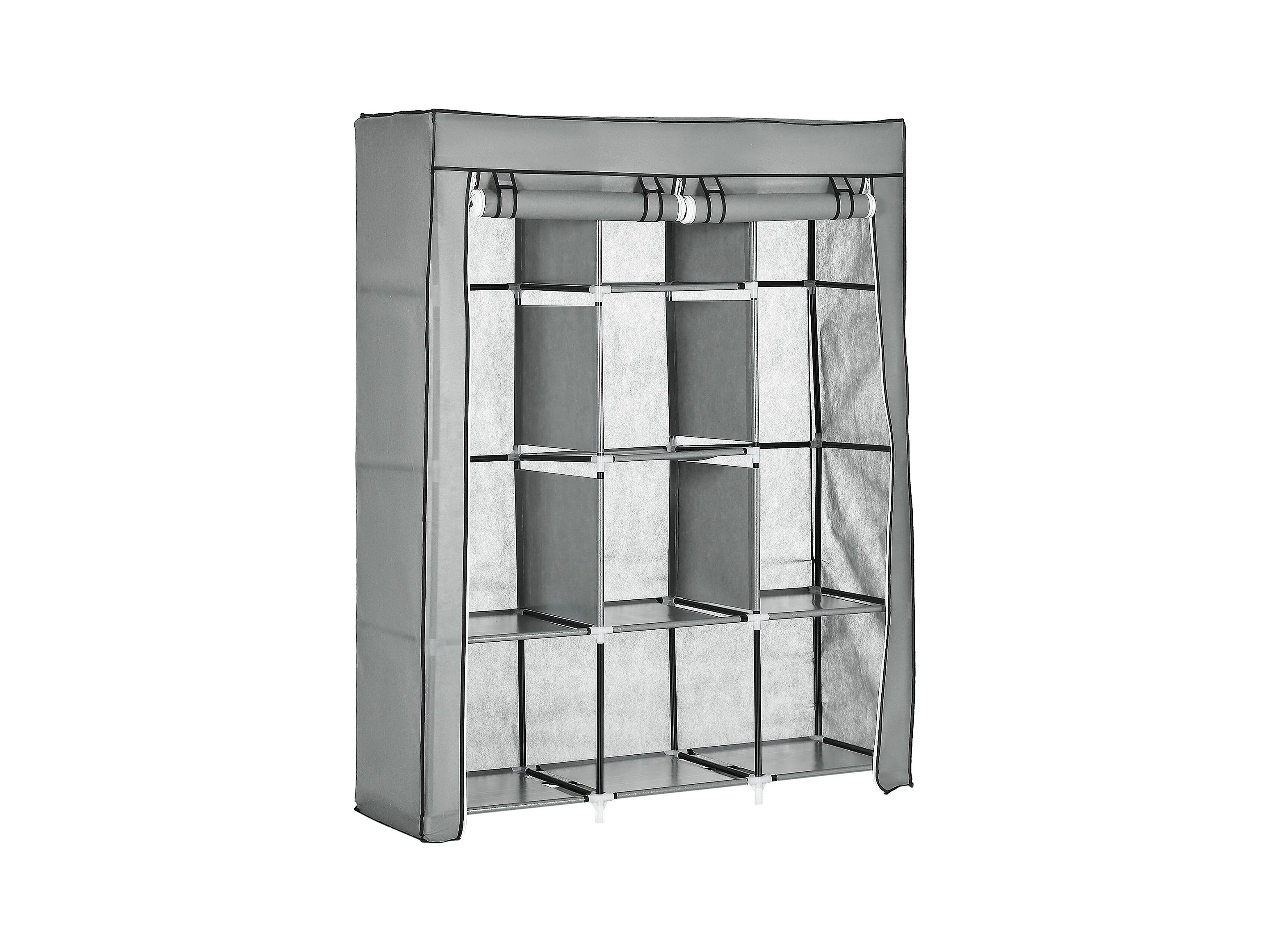 Armoire textile pliable avec 2 tringles et 8 étagères, structure acier, gris clair (125x43x162.5cm)