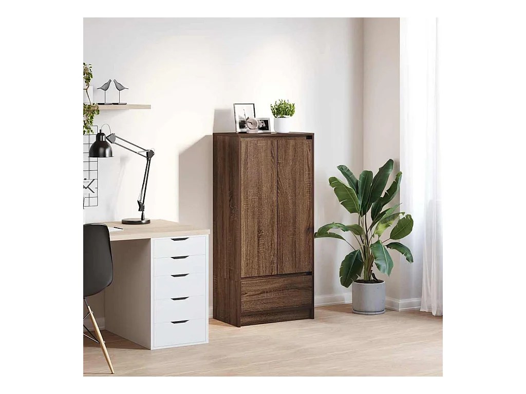 Armoire tiroir chêne marron 55,5x34x119,5 cm bois d'ingénierie