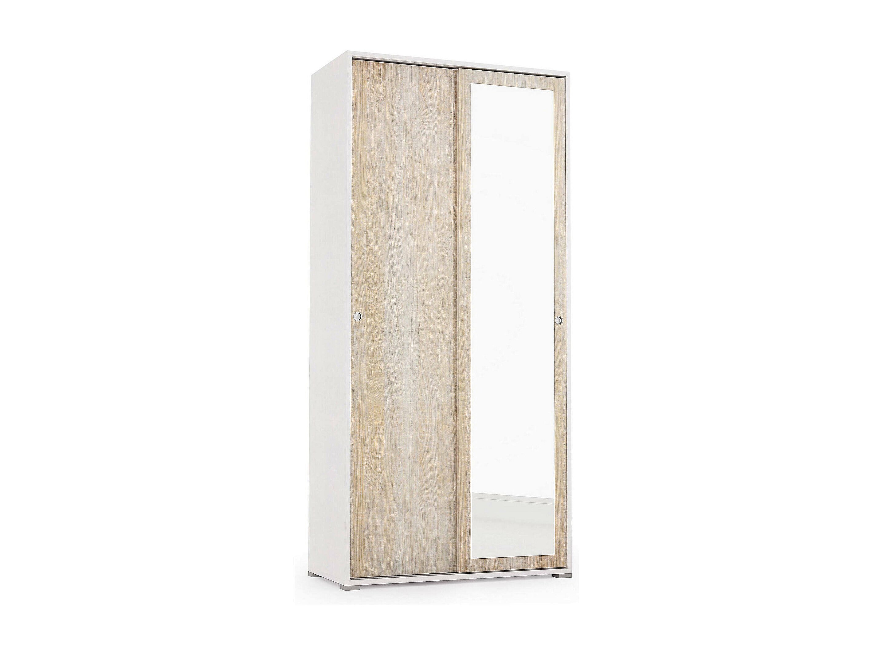 Armoire Tulipano, Armoire avec 2 portes coulissantes et miroir, Armoire avec tringle à vêtements et étagères, 100% Made in Italy, 90x45h195 cm, Chêne et Blanc