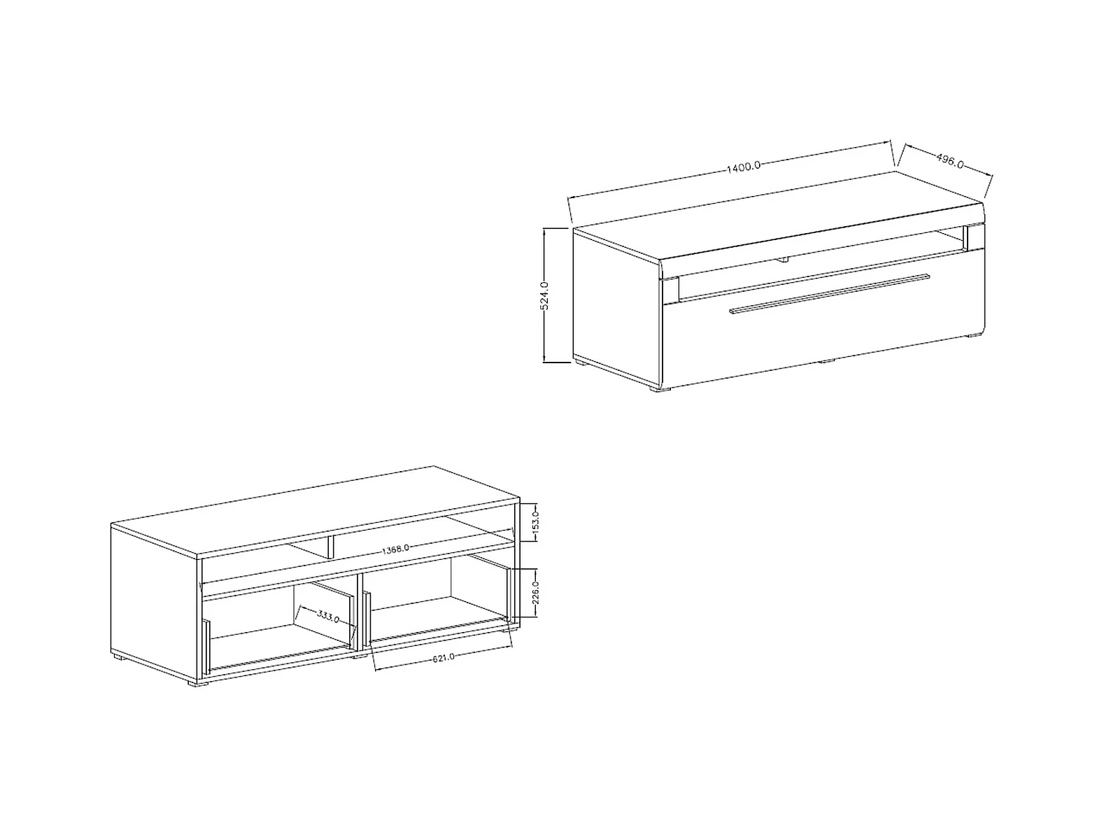 Meuble de télévision WENA, 3 portes, Gaja, 150x53x40 cm, Chêne de Crémone Gaja