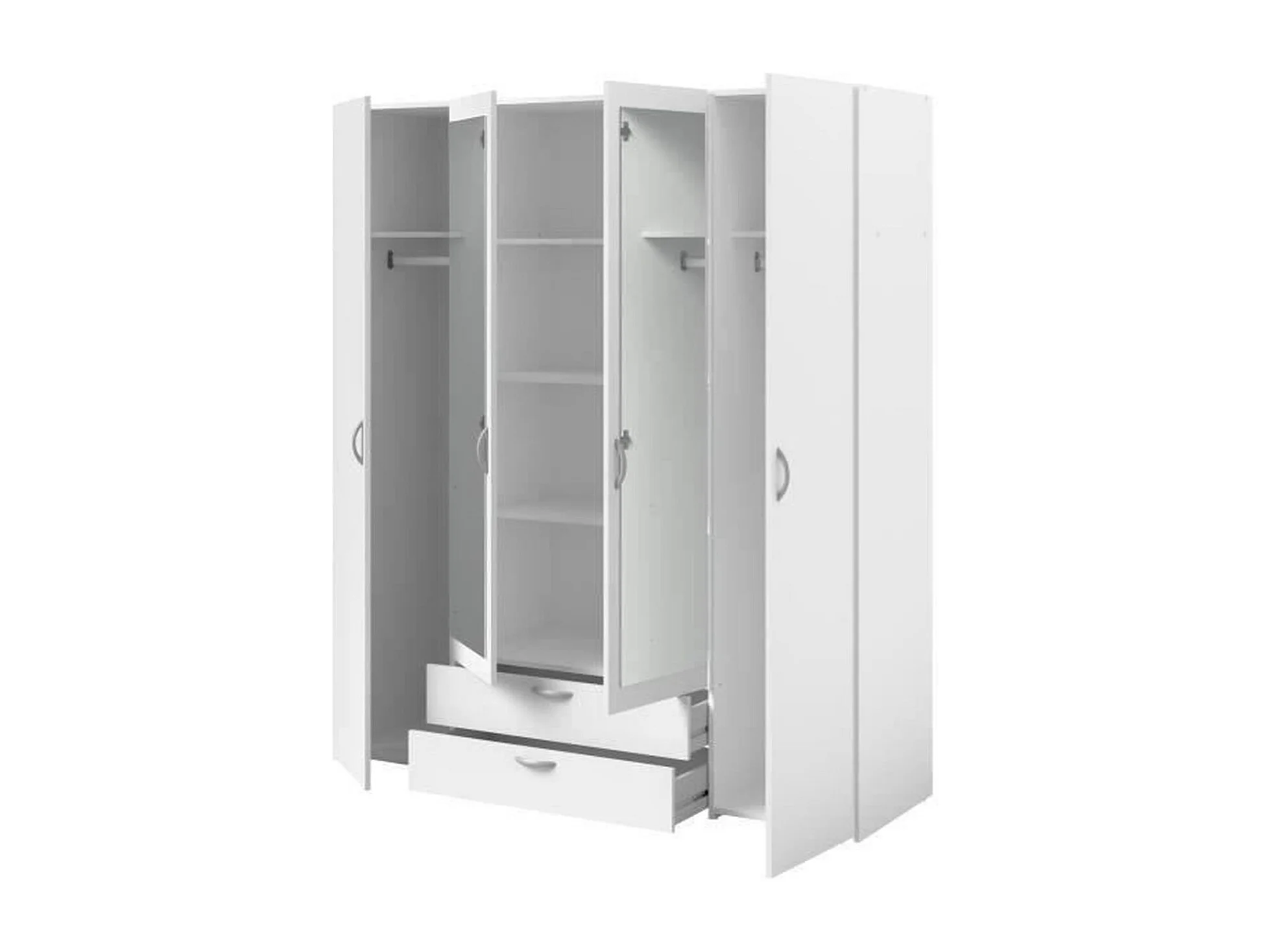 Armoire VARIA - Décor blanc - 4 portes battantes + 2 miroirs + 2 tiroirs - L 160 x H 185 x P 51 cm - PARISOT