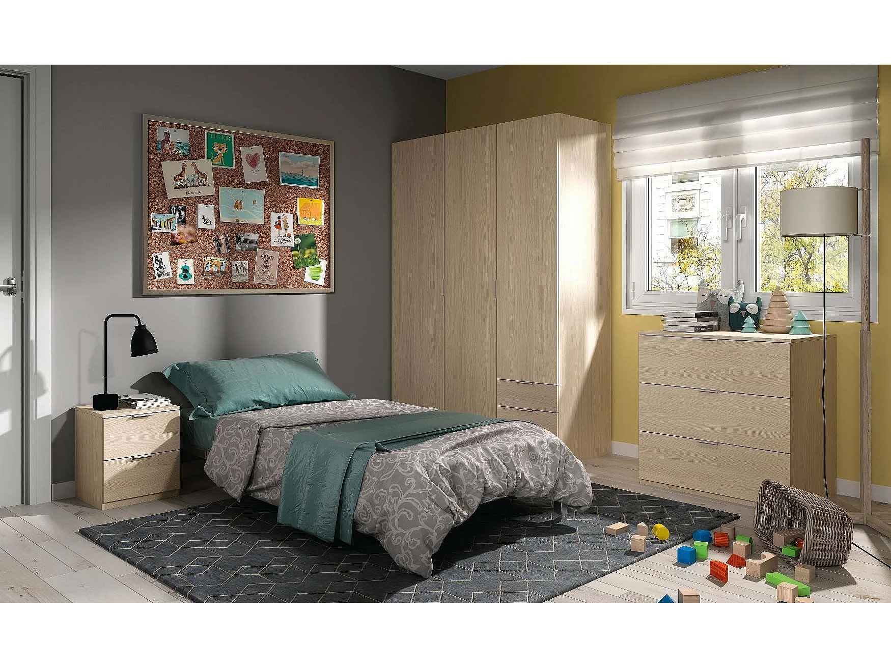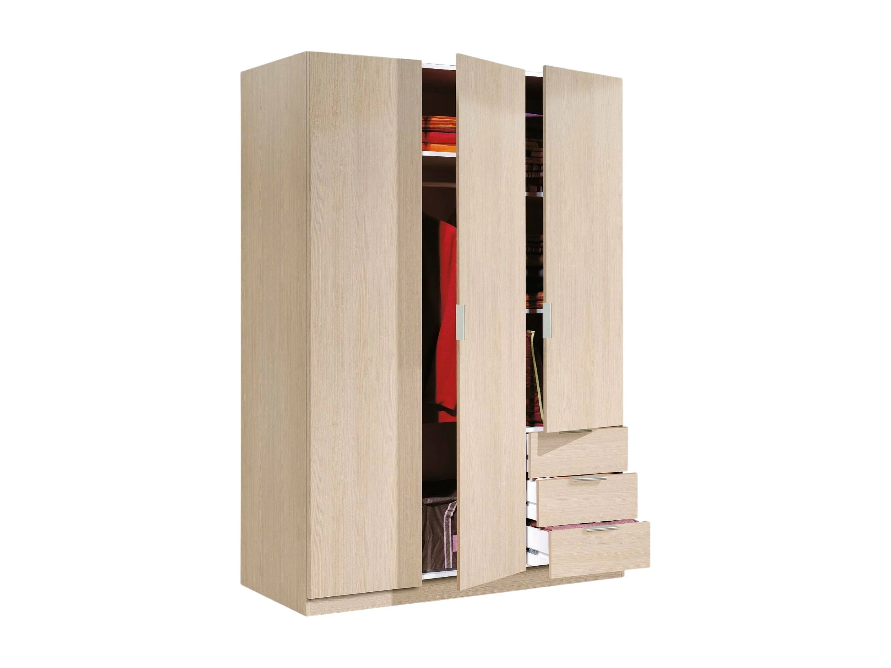 Armoire Warren, Armoire de chambre avec 3 portes et 3 tiroirs, Armoire avec 3 étagères et tringle à vêtements, 121x52h180 cm, Chêne