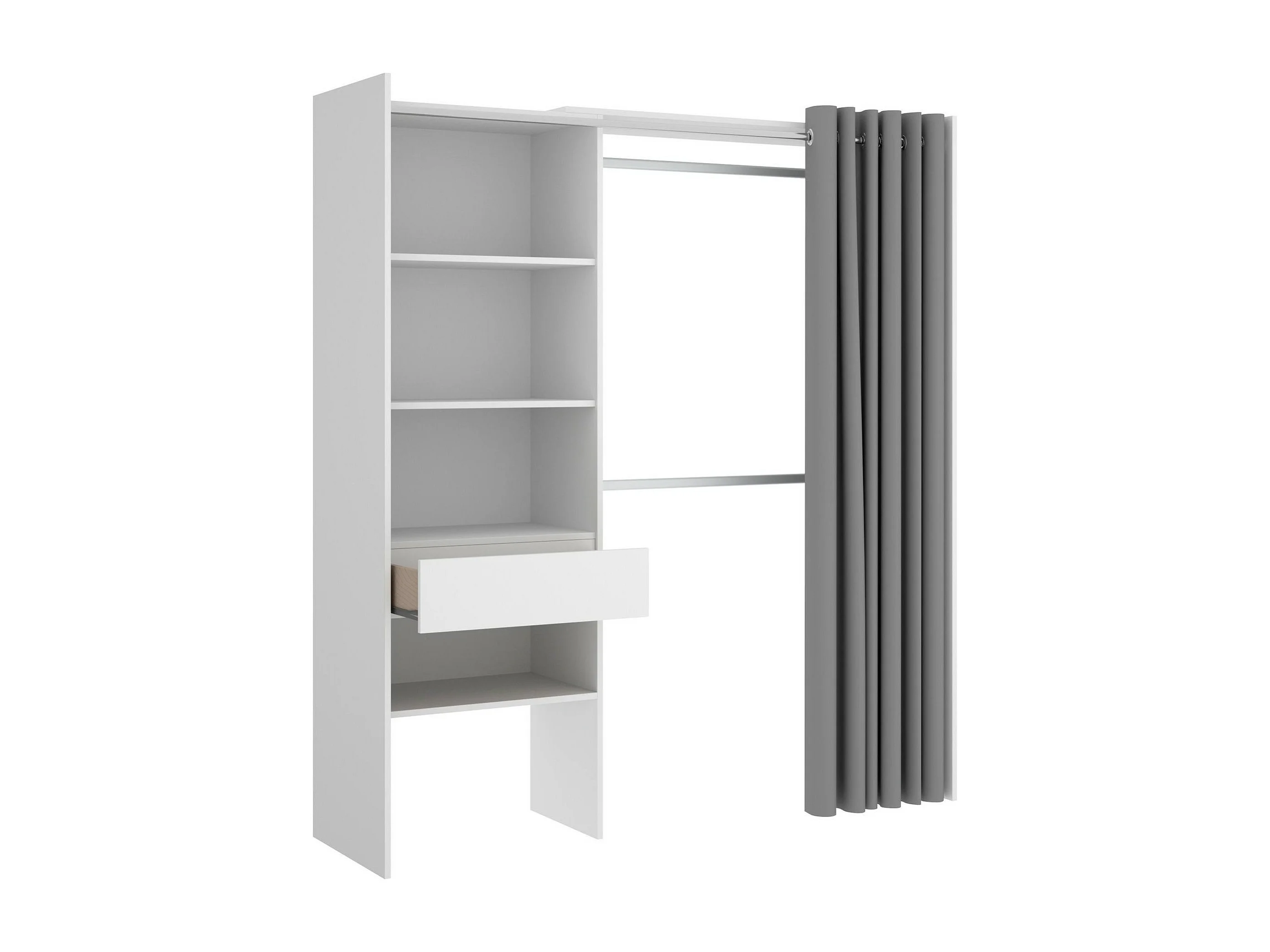Armoire Wetterhorn, Structure pour dressing, Cintre ouvert, 160x50h205 cm, Blanc et Gris