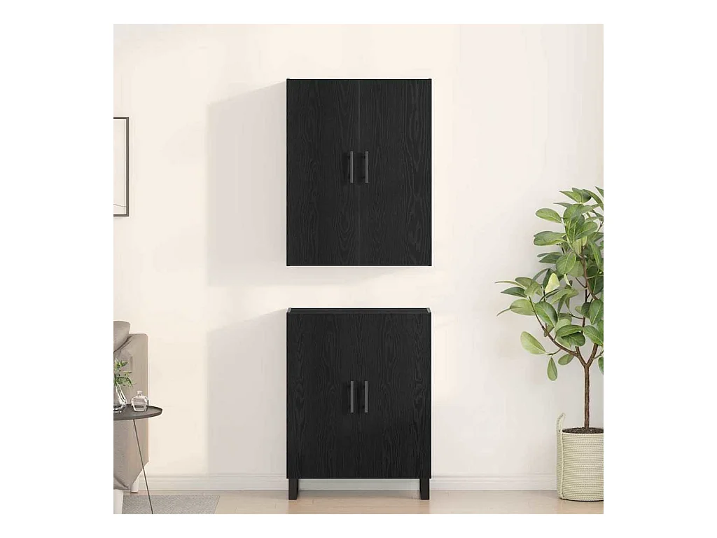 Buffet 2 pcs Noir Chêne 69,5x34x180 cm en bois d'ingénierie