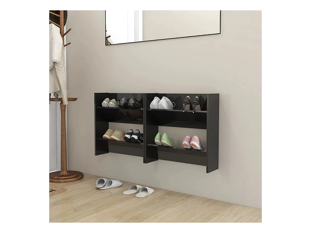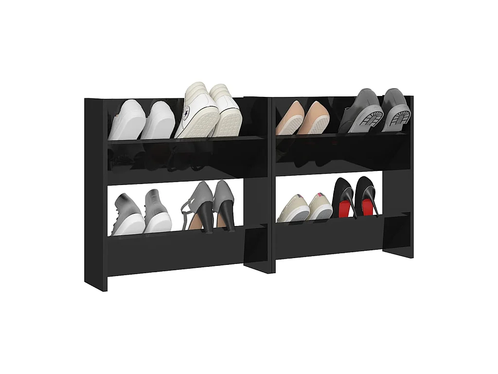 Armoires à chaussures murales 2 pcs Noir brillant 60x18x60 cm